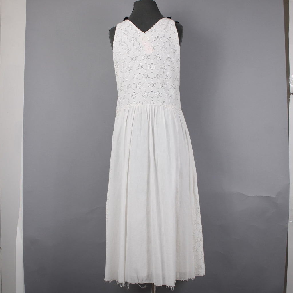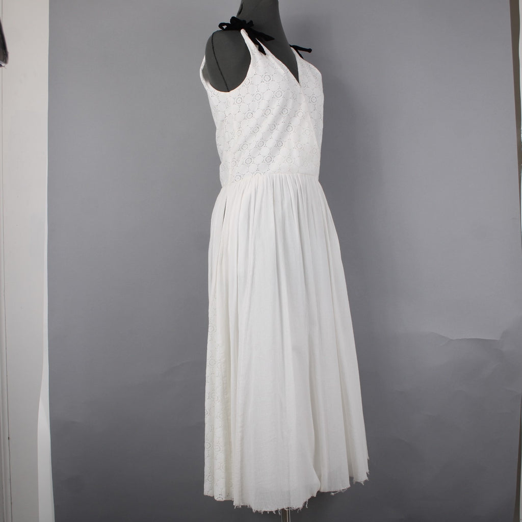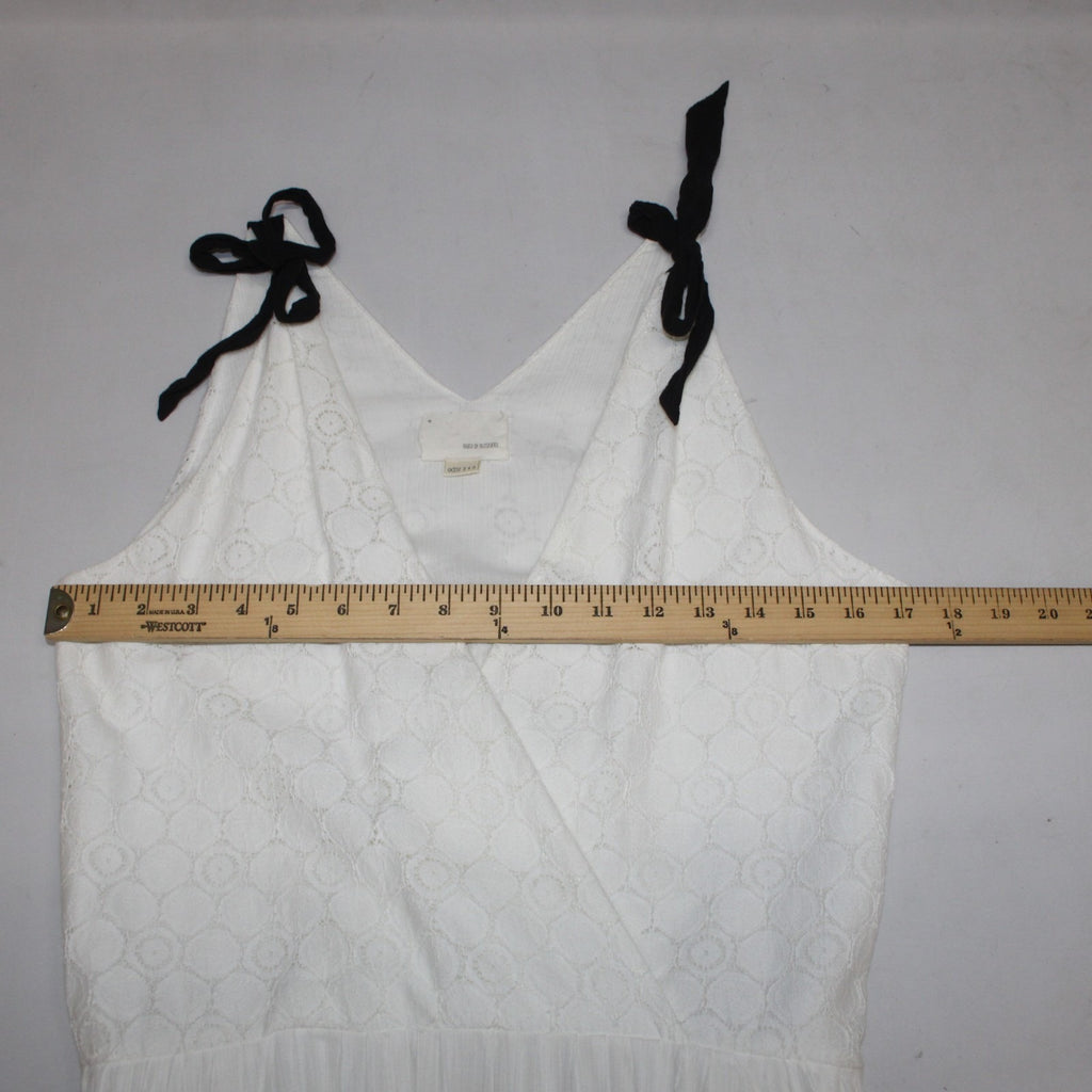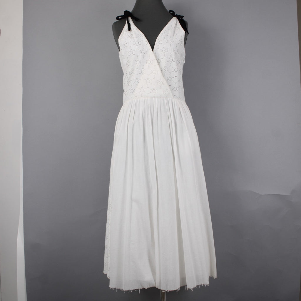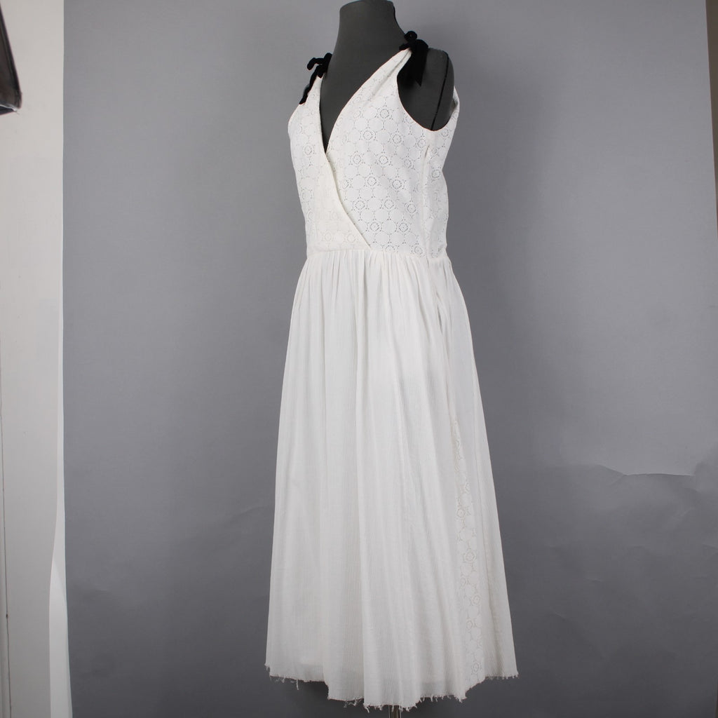 Band Of Outsiders Dress Sz 1 White Black Ribbon Tie Layered V Neck 100% Cotton