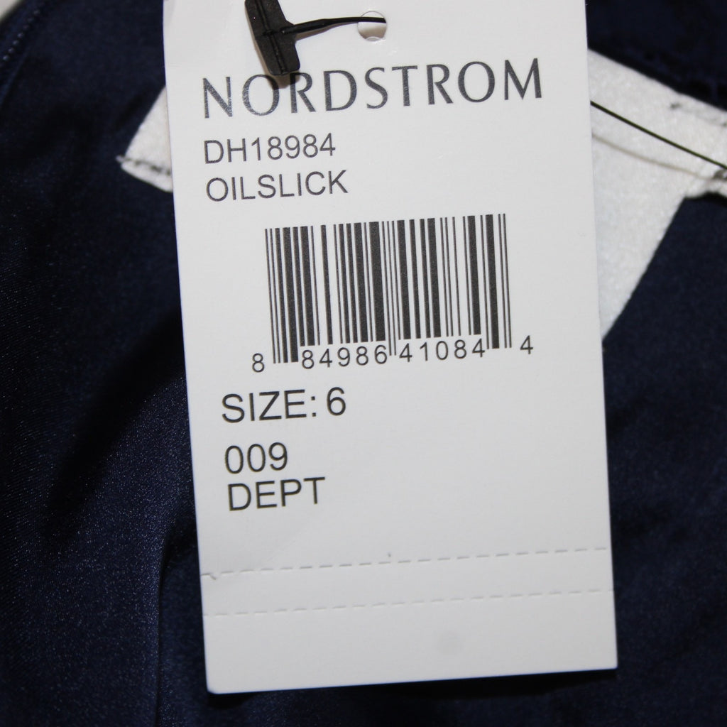 BB Dakota Dress NEW Oilslick Sz 6 Navy Blue Lace Lined Open Back Cotton Dress