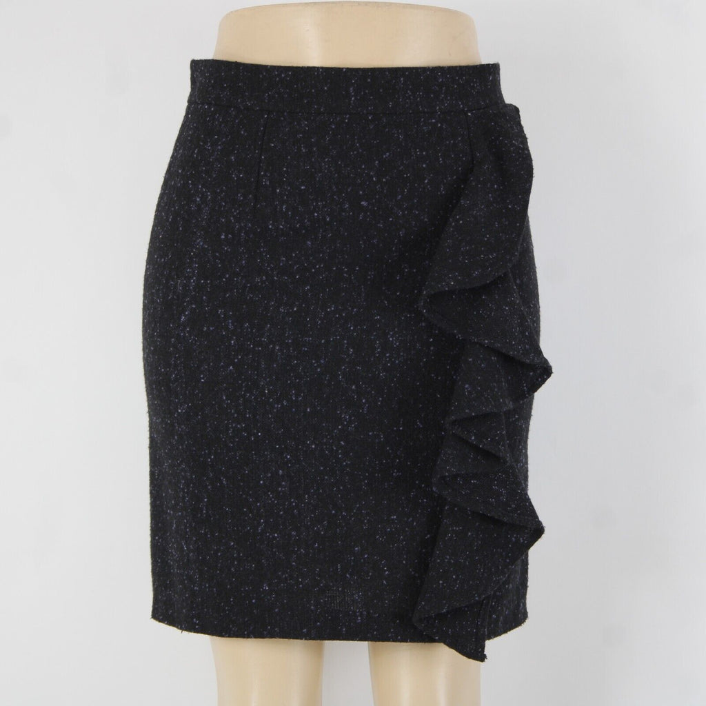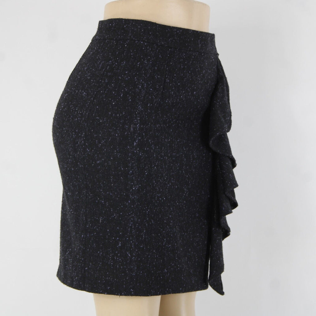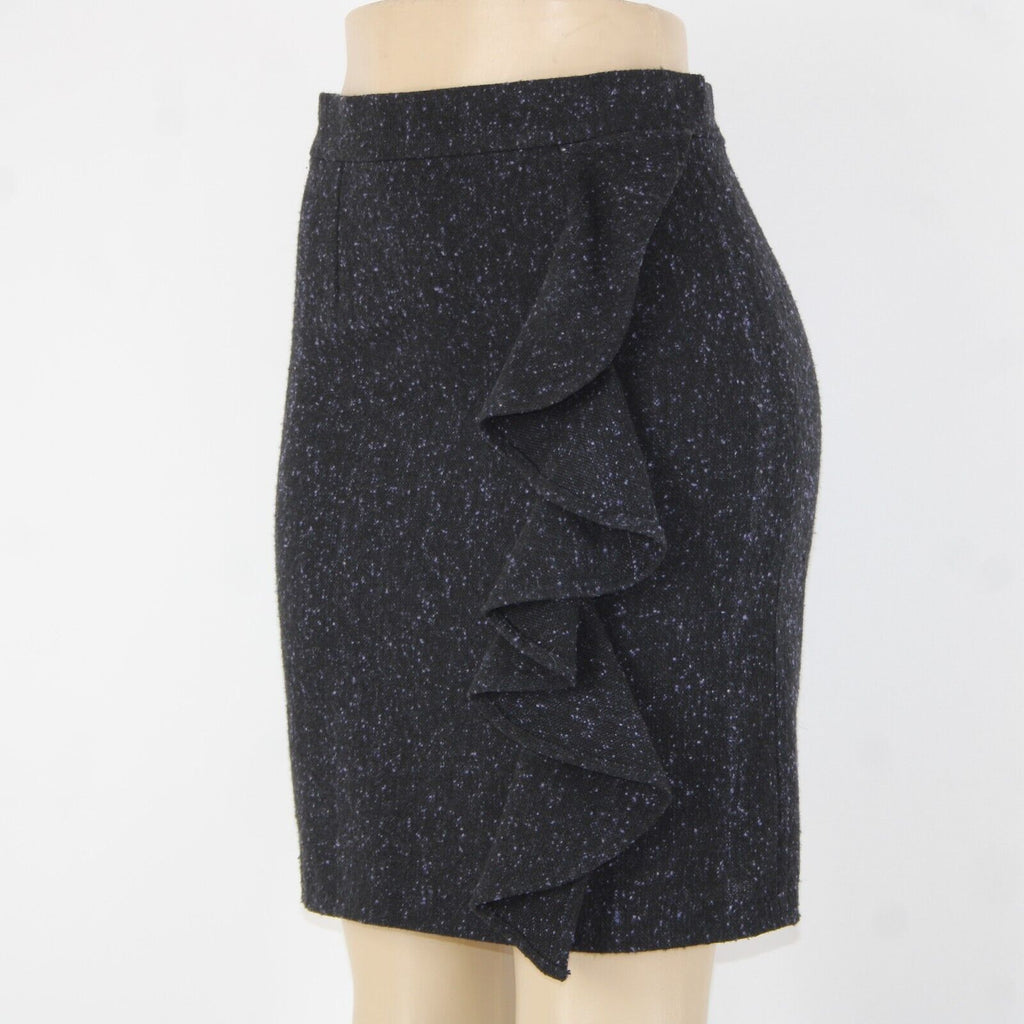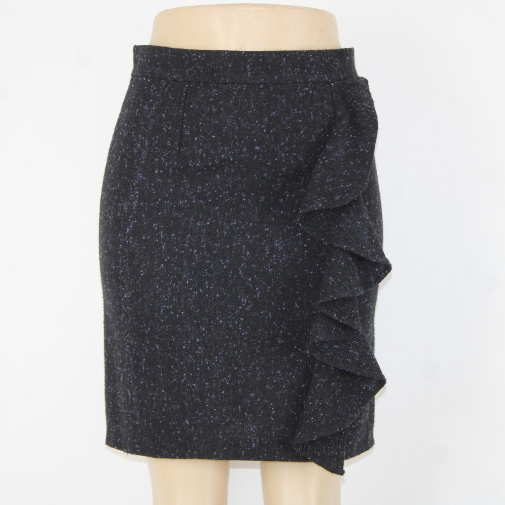 BB Dakota Sz 4 Black Purple Ruffle Unlined Wool Polyester Pencil Skirt