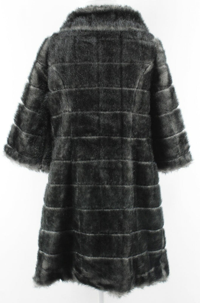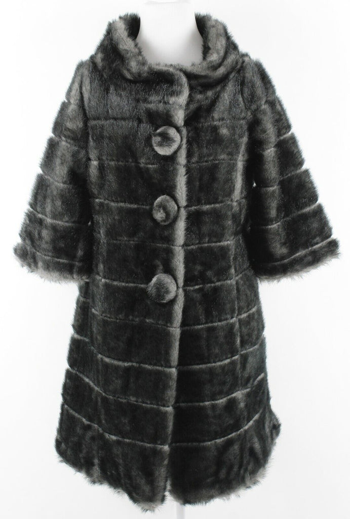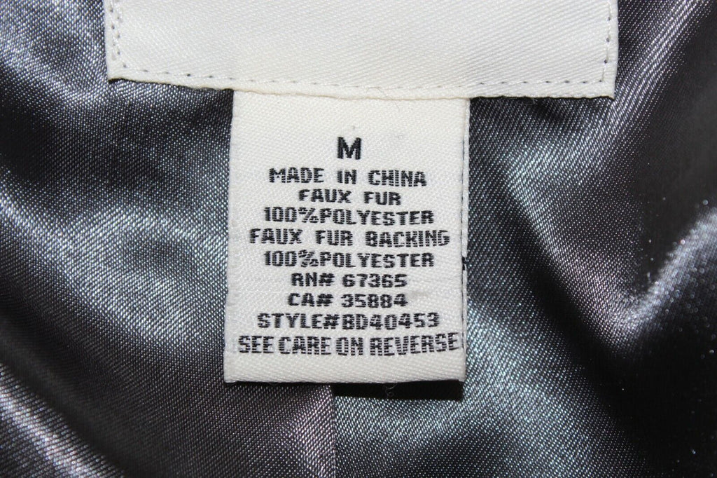 BB Dakota Sz M Black Gray Faux Fur Button Up 100% Polyester Coat