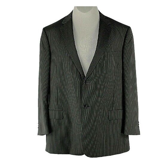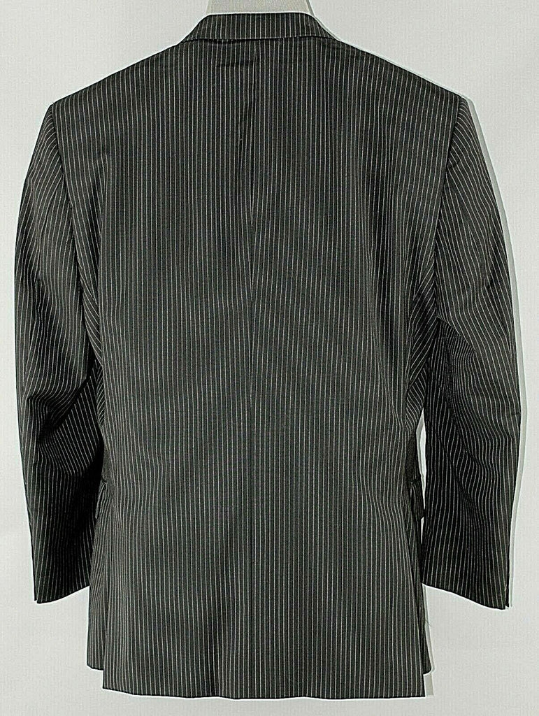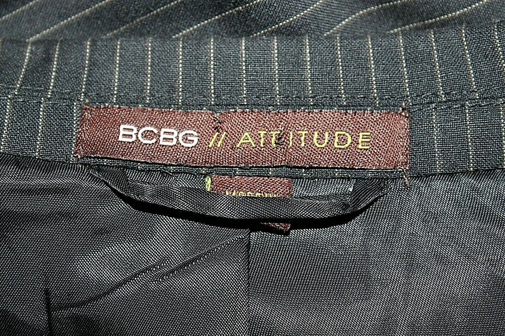 BCBG Attitude Sz 44R Black Tan Pinstriped 100% Wool Lined 6 Pocket Blazer