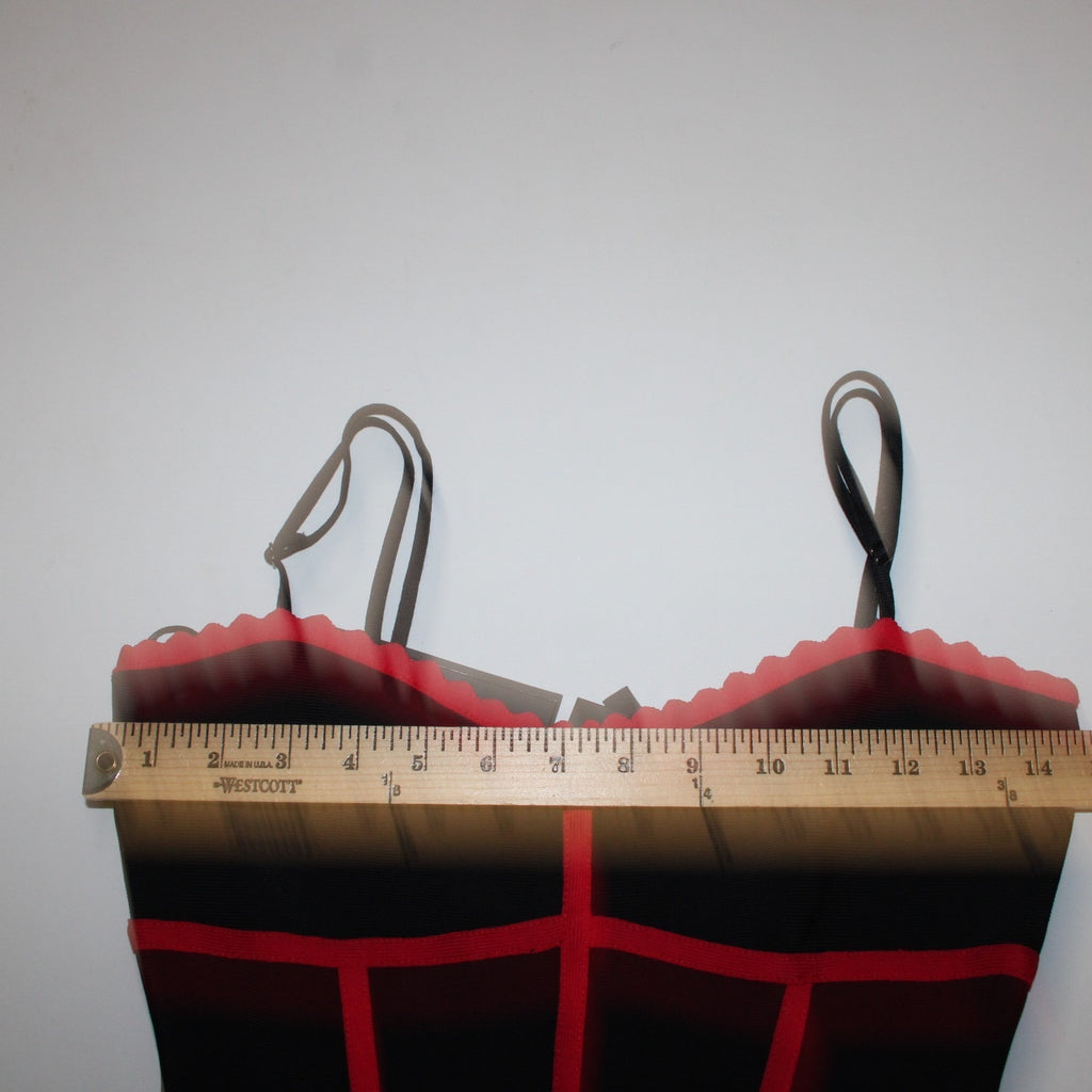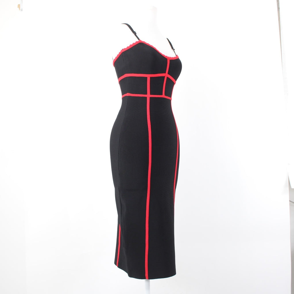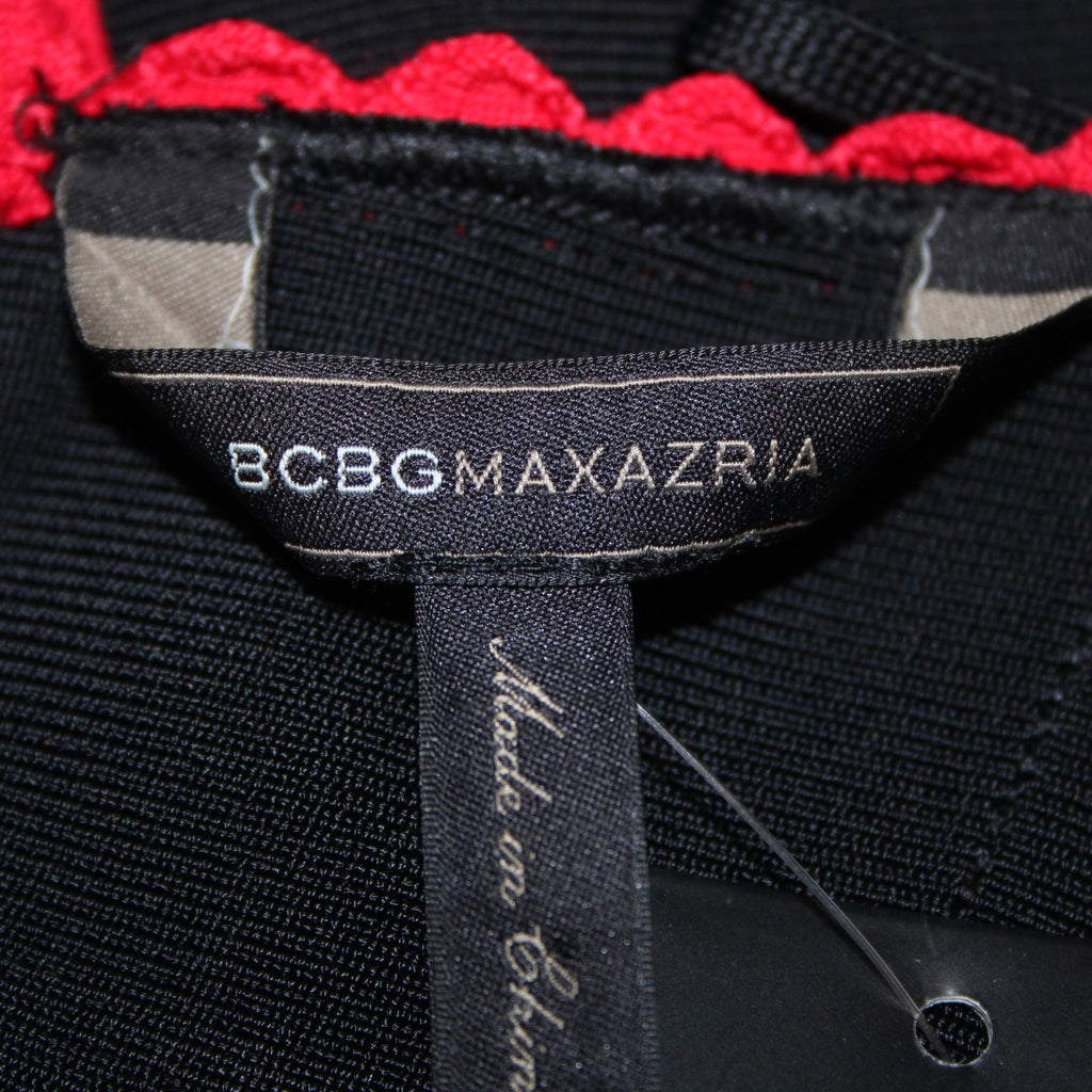 BCBG NEW $328 Sz M Black Red Body Conscious Rayon Nylon Spandex Midi Dress