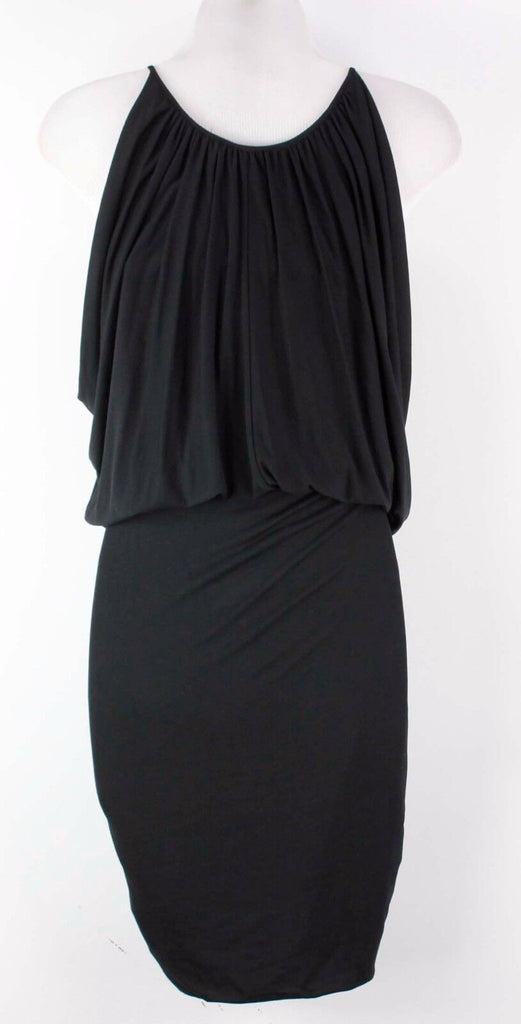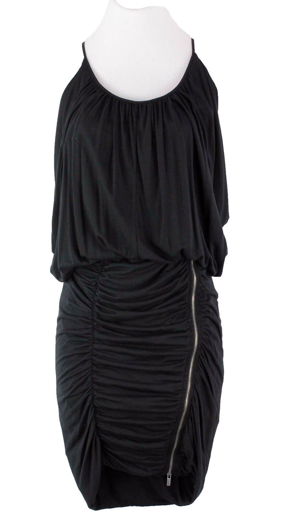 BCBGMaxazria NWT $107 Sz XS Black Silver Zip Sleeveless Ruched Doris Dress