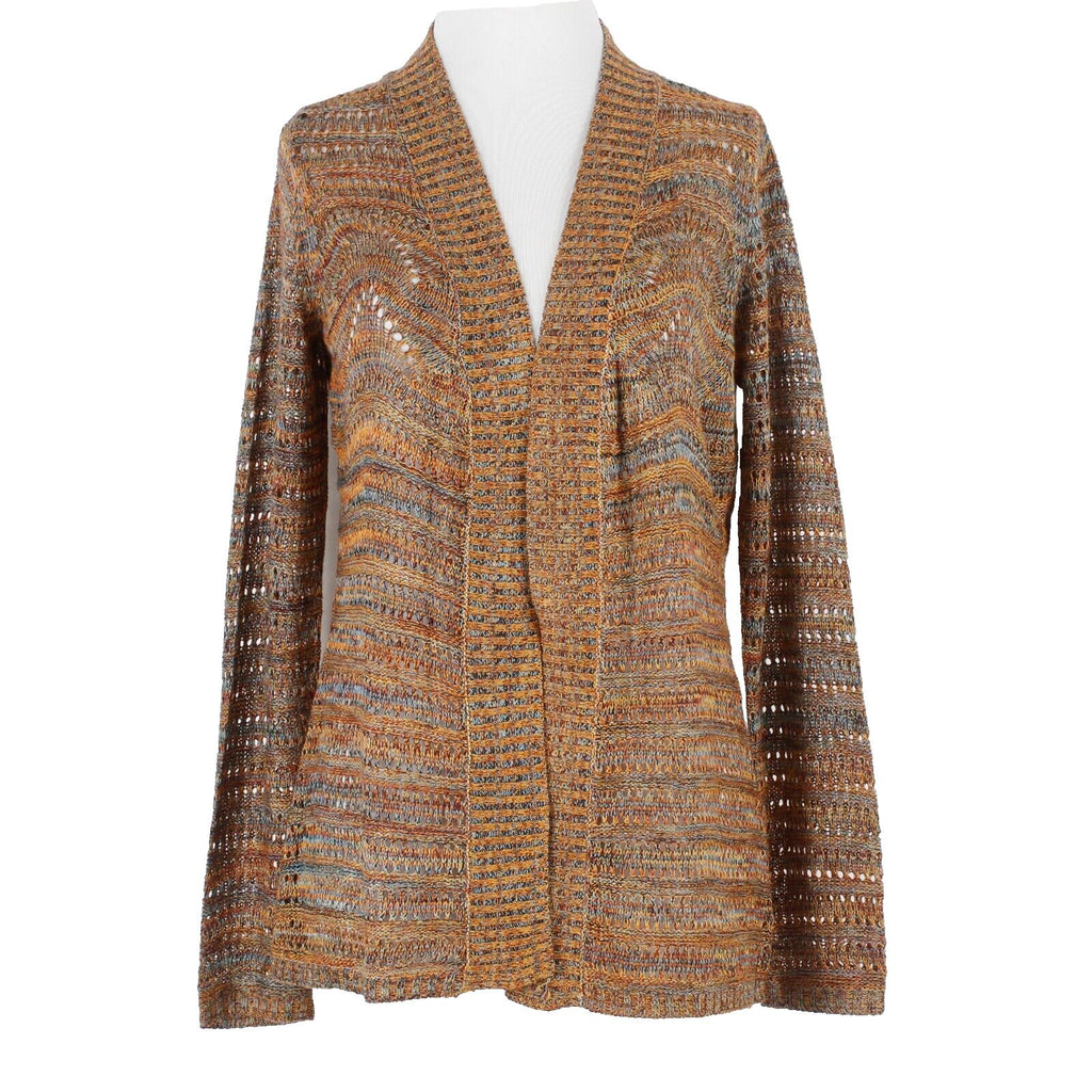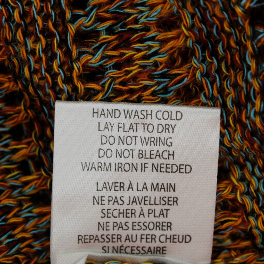 Belldini Sz S Orange Aqua Multi Open Crochet 100% Acrylic Knit Cardigan