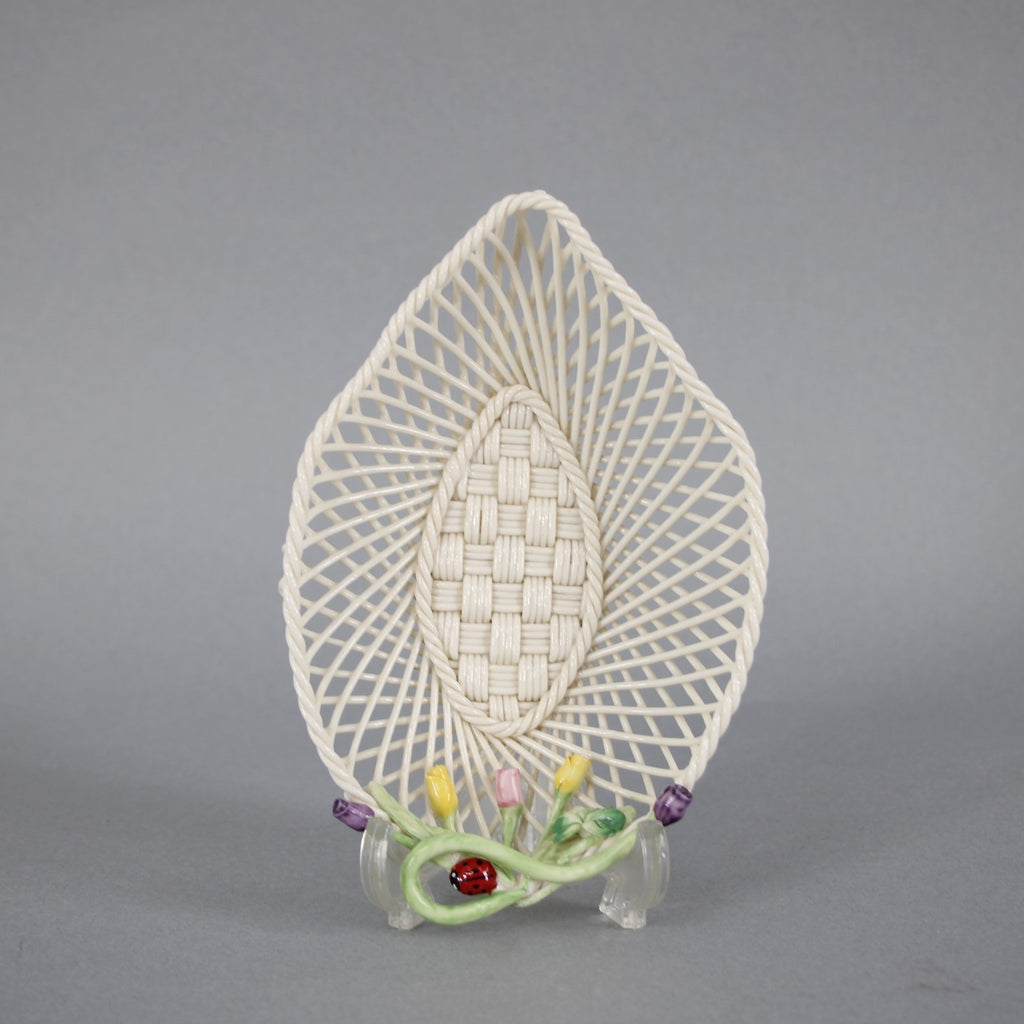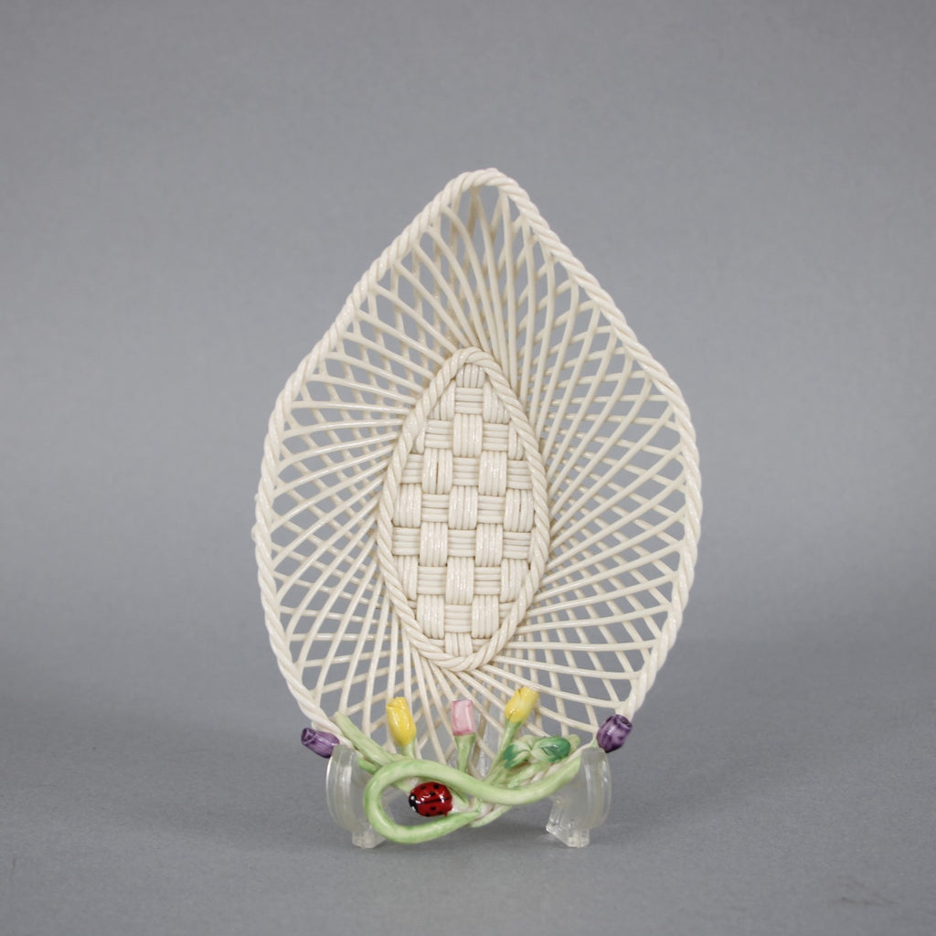 Belleek Trinket Basket Cream Porcelain Multi Color Floral Lady Bug 6 x 4 Basket