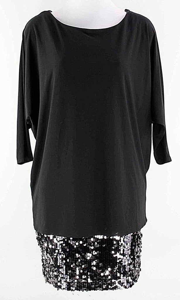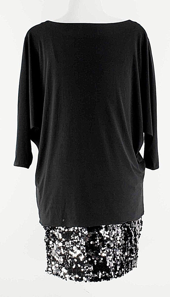Betsey & Adam Sz 4 Black Silver 3/4 Batwing Sleeve Spangled Skirt Dress