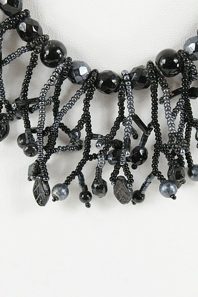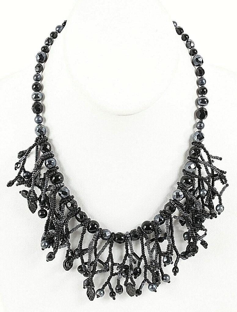 Black Gunmetal Graduated Glass Beads + Fringe Beads 17 + 4 Ext Necklace