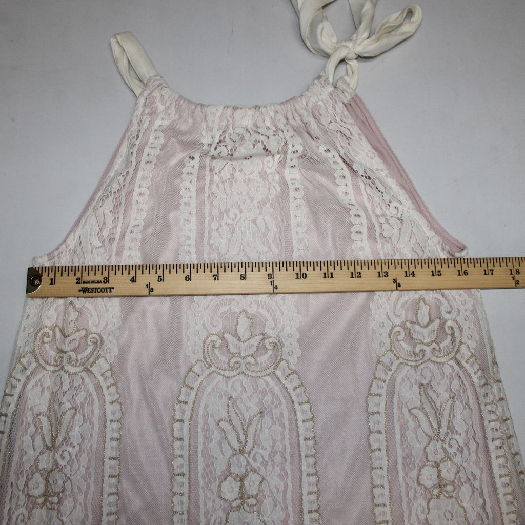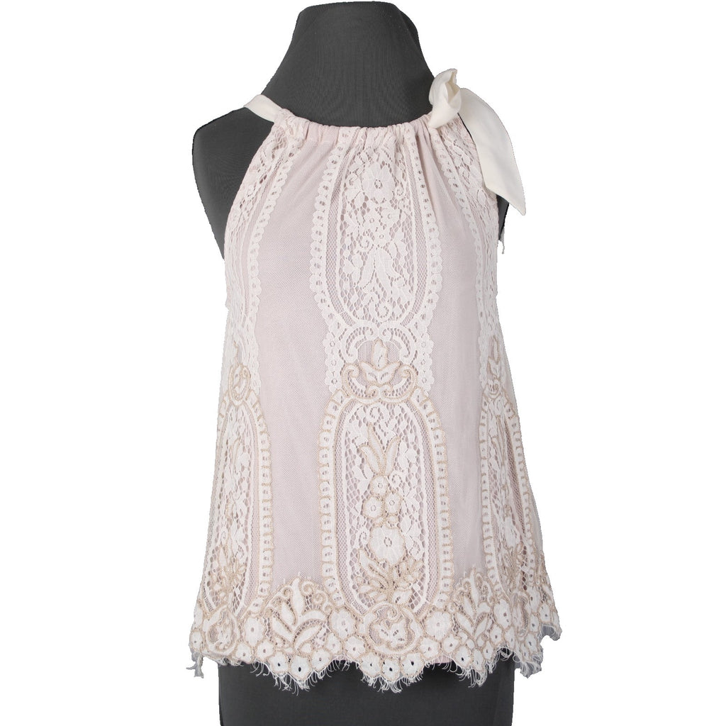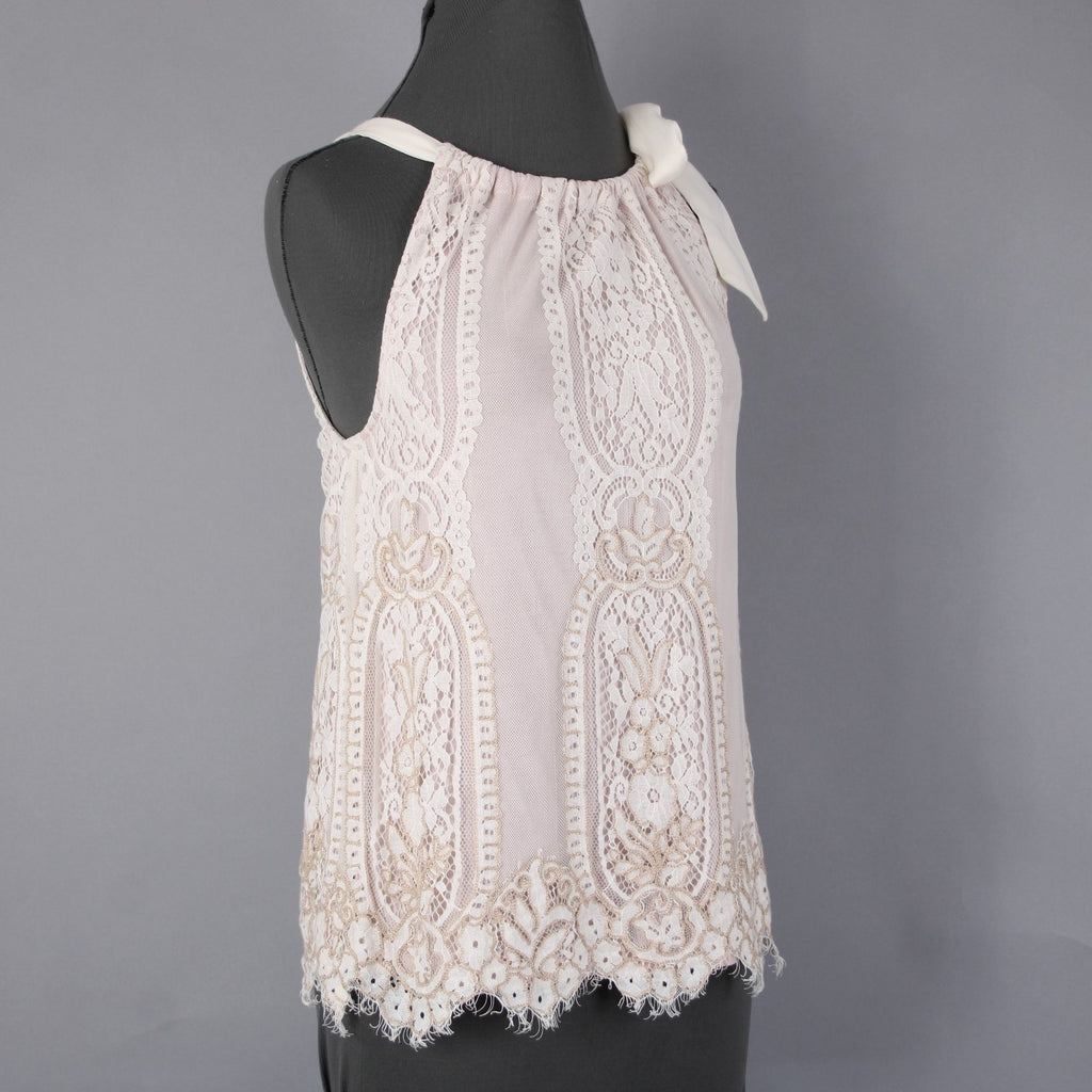 Blink London Top Sz XS Pink Cream Gold Lace Overlay Nylon Viscose Top
