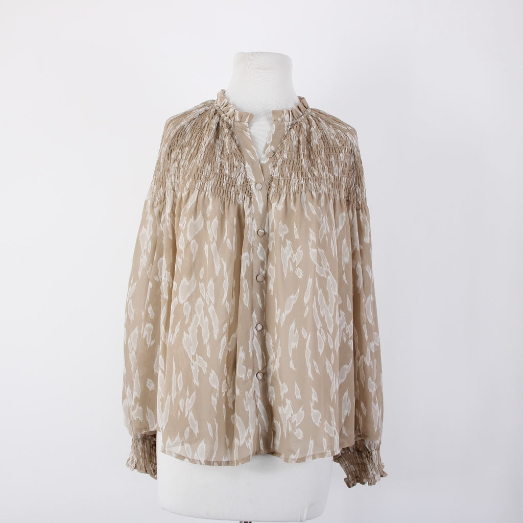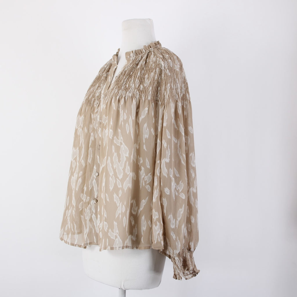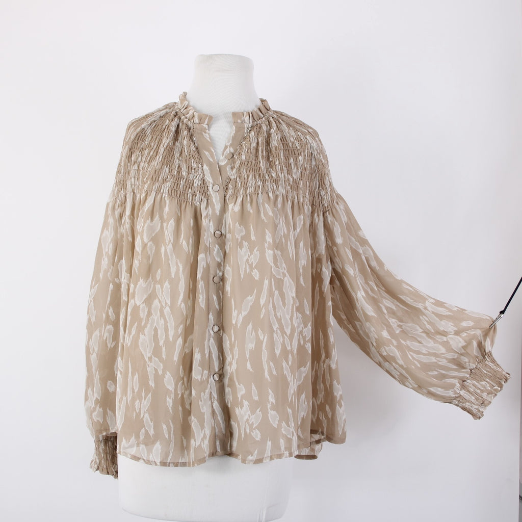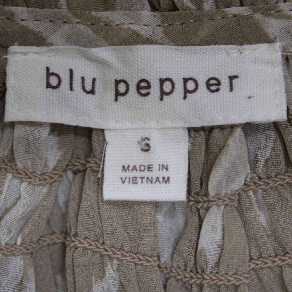 Blu Pepper Sz S Brown White Sheer Collared Ruched Buttons 100% Polyester Top