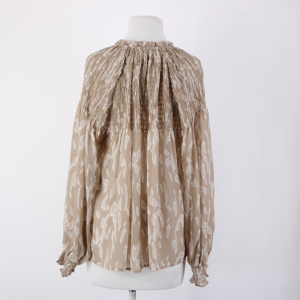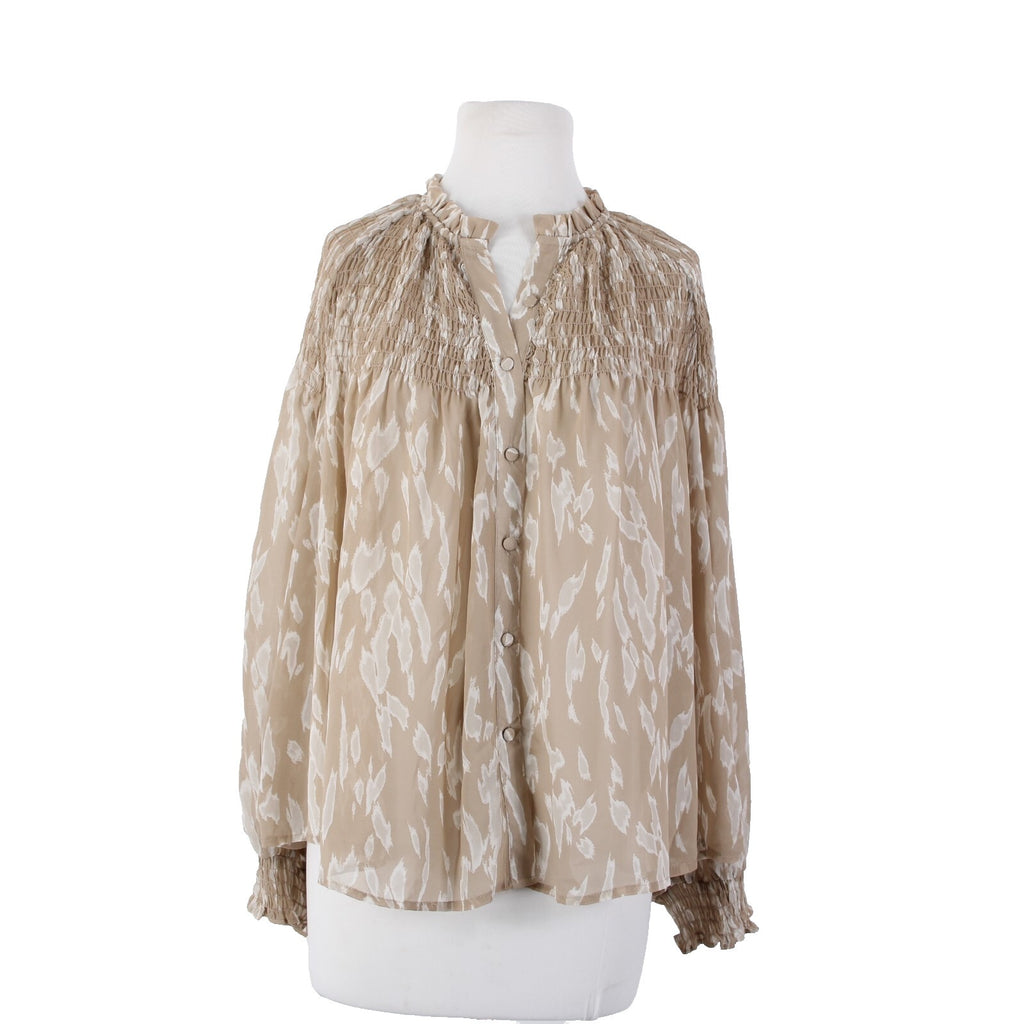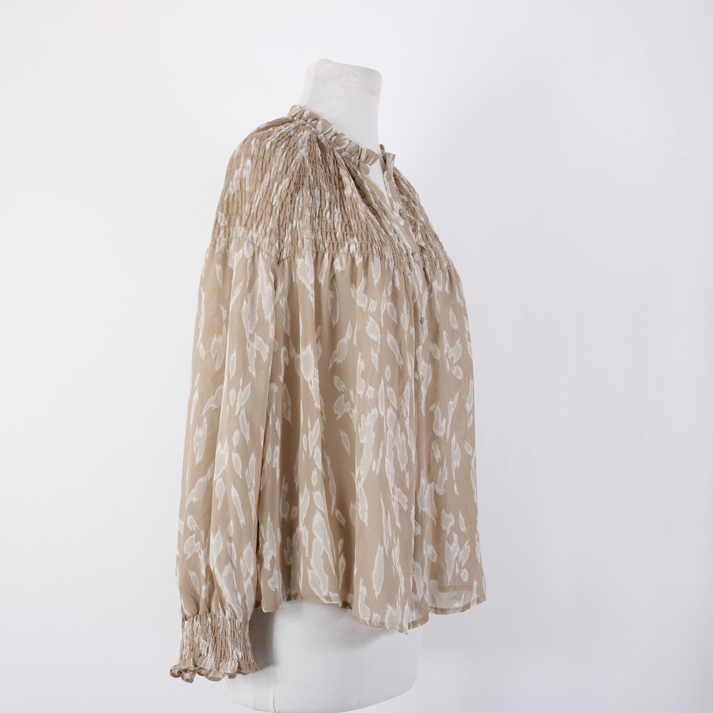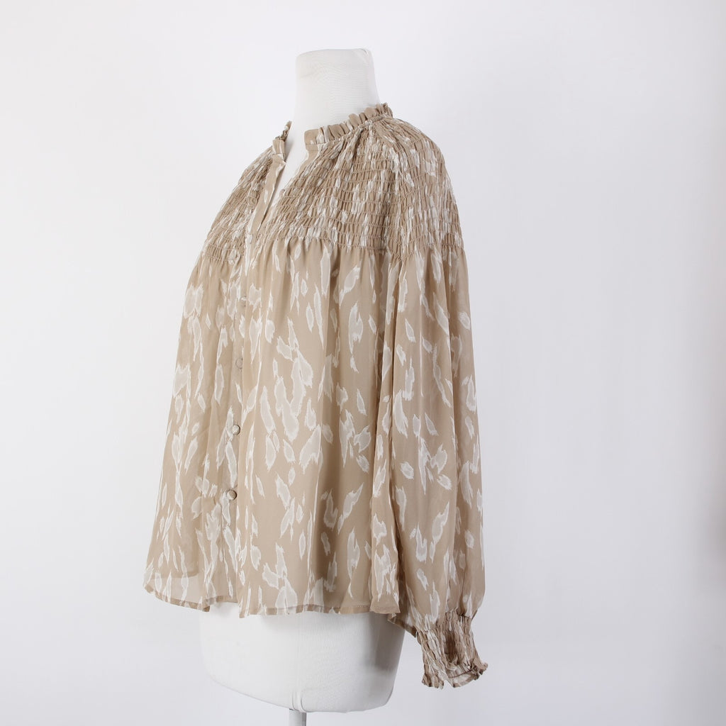 Blu Pepper Sz S Brown White Sheer Collared Ruched Buttons 100% Polyester Top