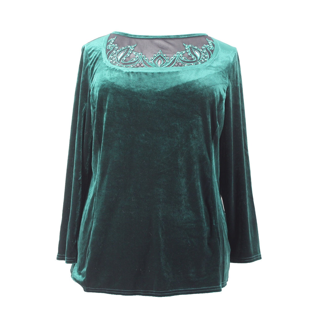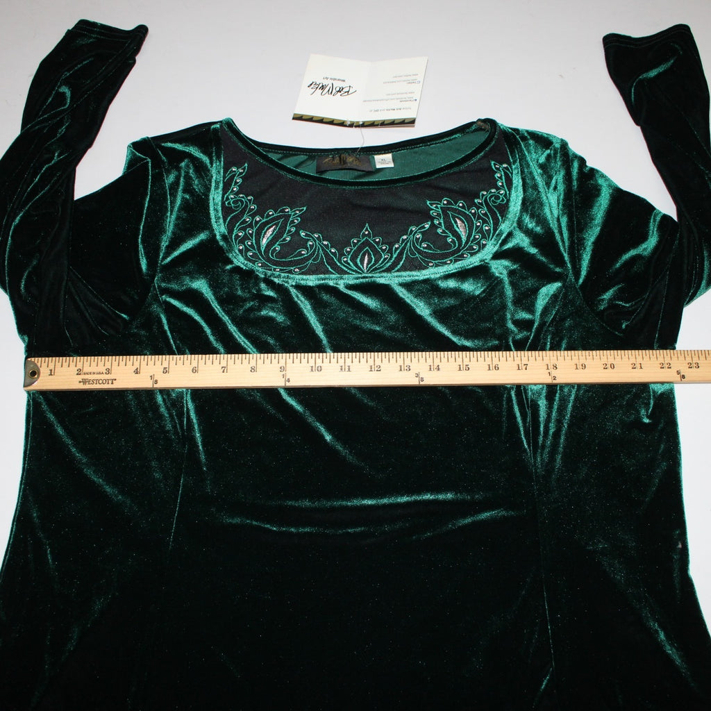 Bob Mackie Top NEW Sz XL Green Black Velour Embroidered Polyester Spandex Top