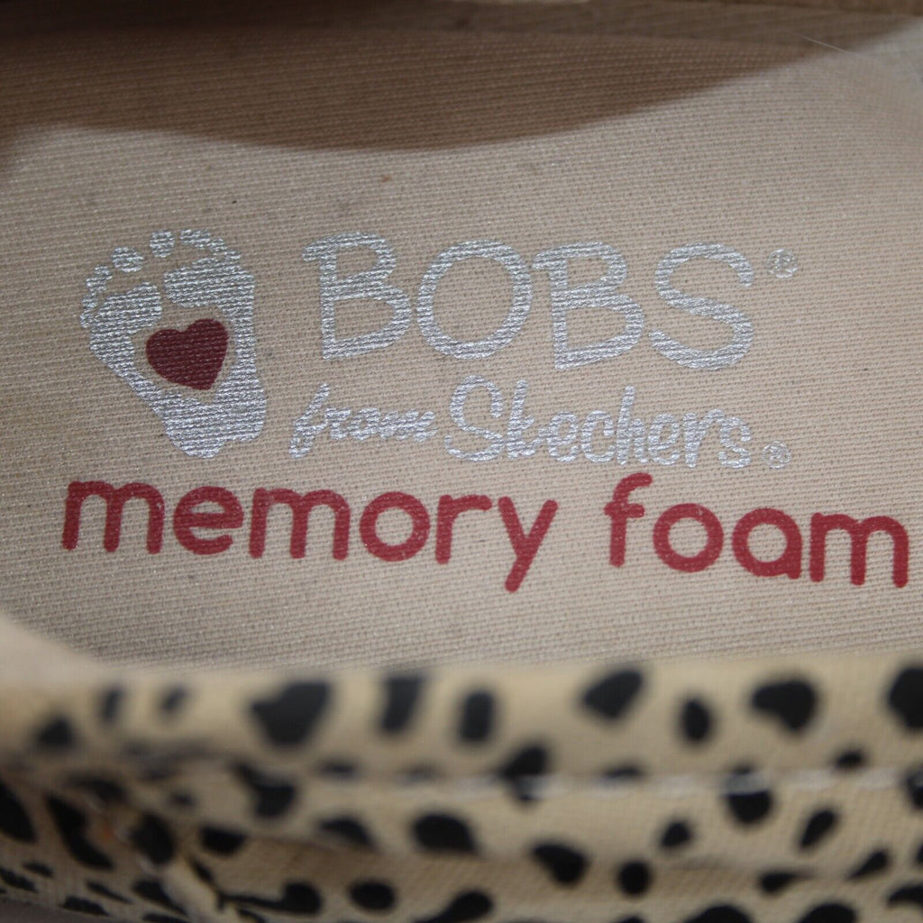 Bobs By Skechers Sz 10 Tan Black Animal Print Arch Pillow Textile Upper Flats