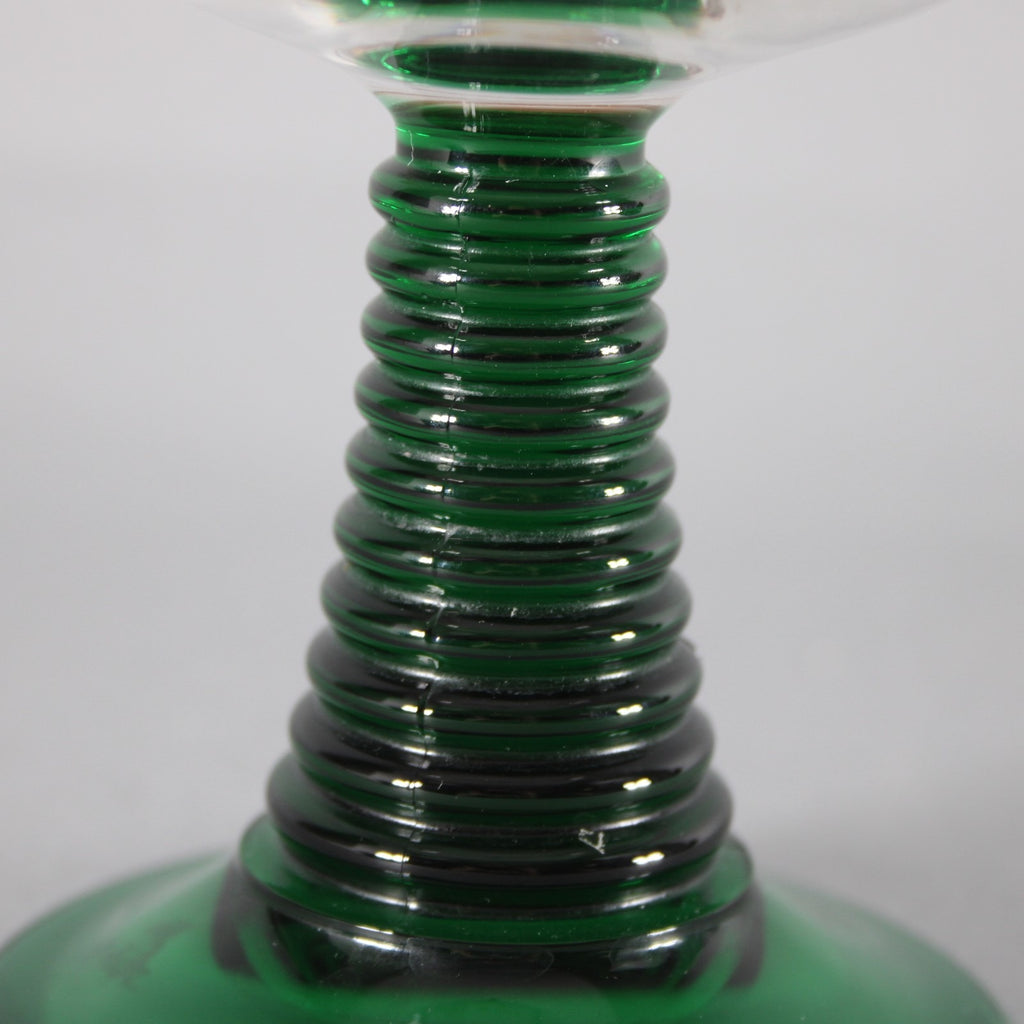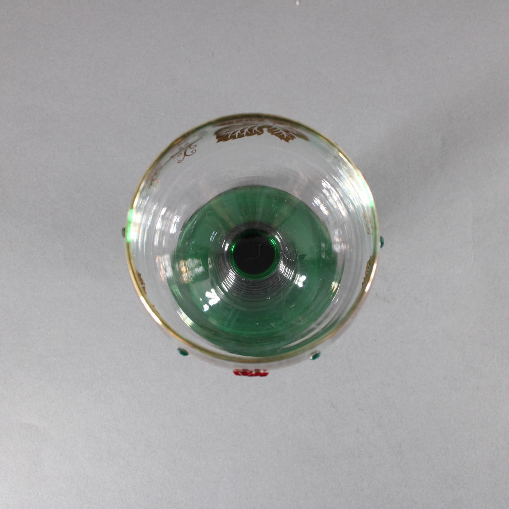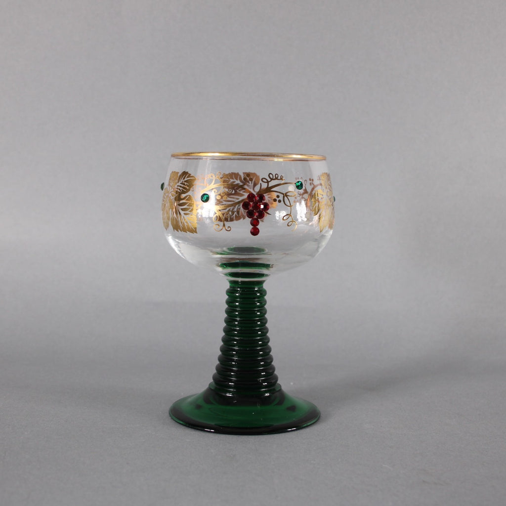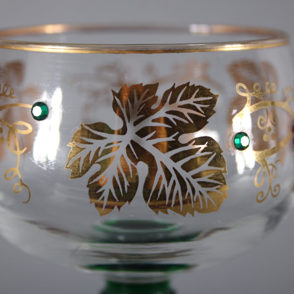 Bohemian Unbranded Wine Glass Green Gold Rhinestones Striated Vintage Wine Glass