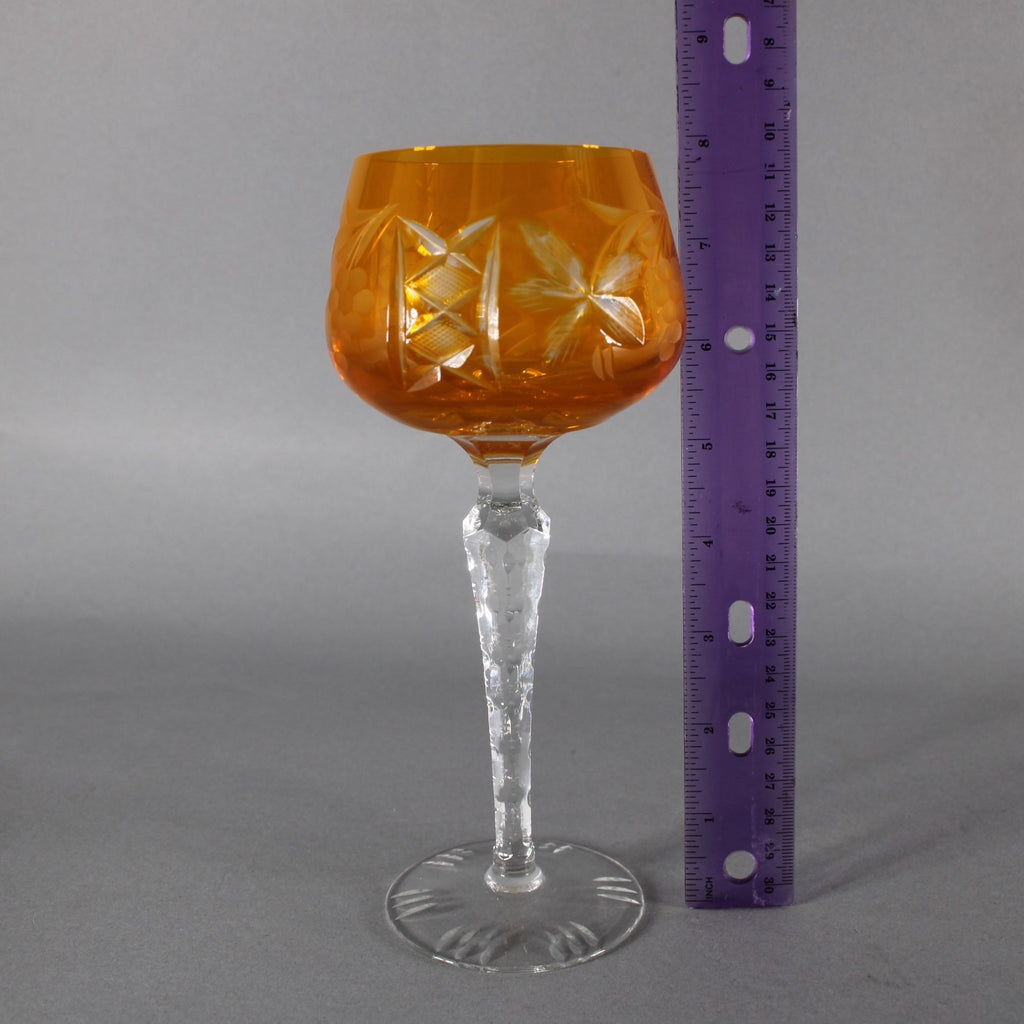 Bohemian Unbranded Wine Glass Yellow Cut Crystal 8" Wine Glass