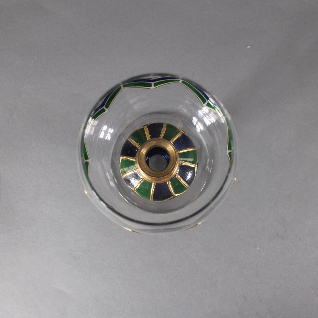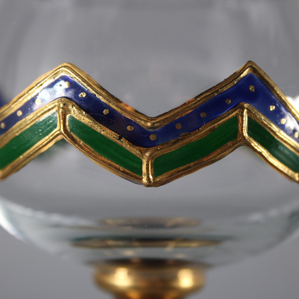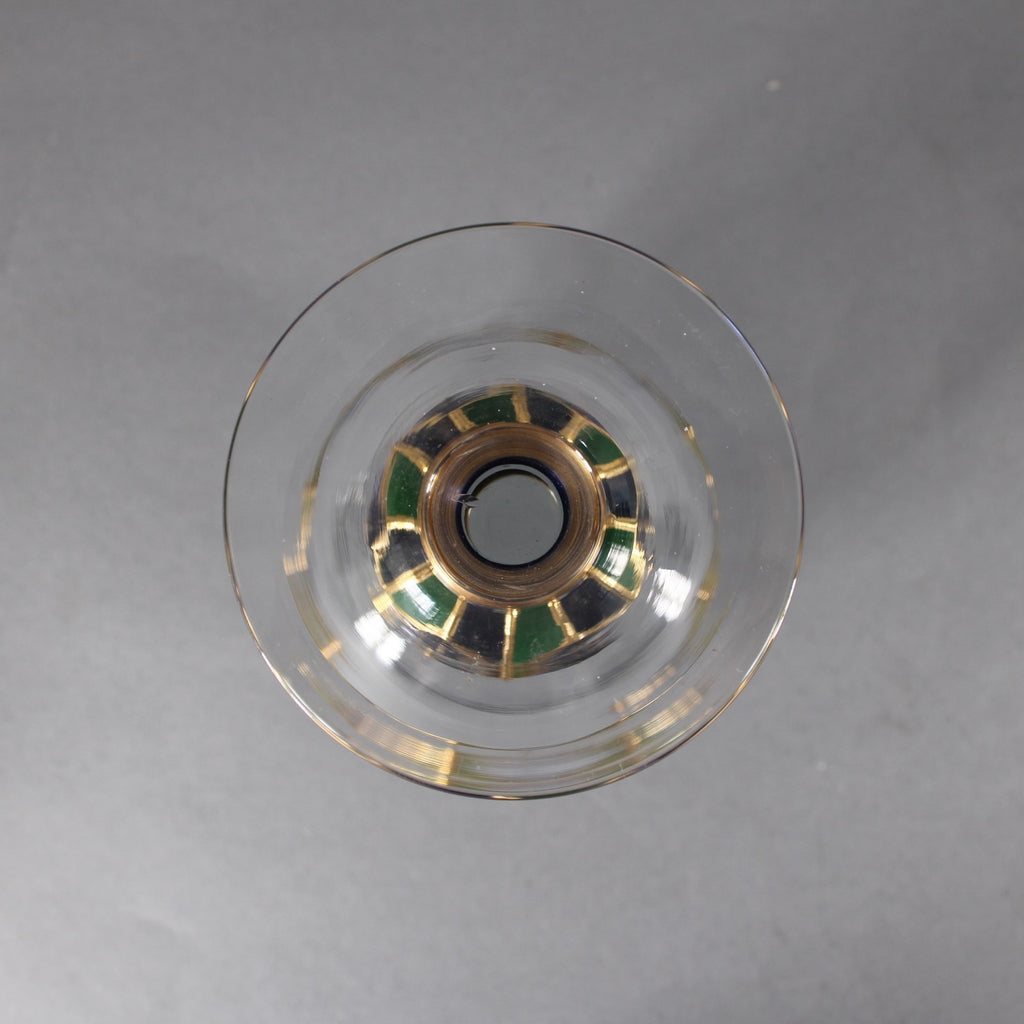 Bohemian Wine Glass Blue Green Gold Painted 6.25" Wine Glass
