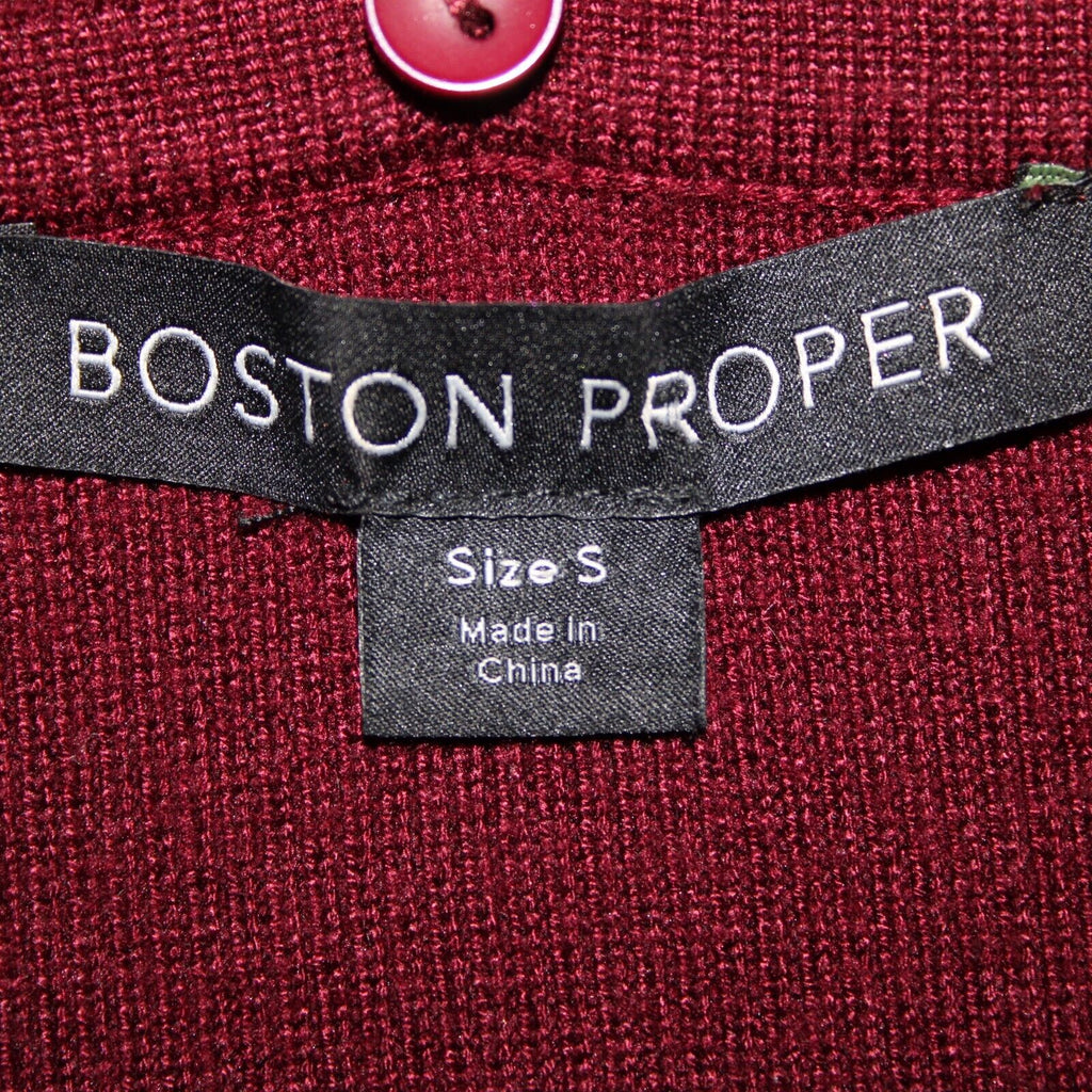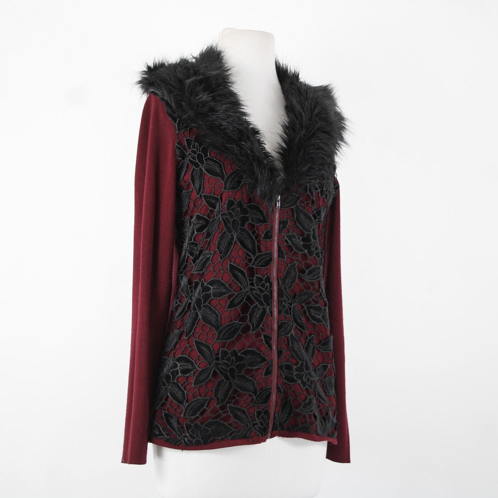 Boston Proper Sz S Burgundy Red Black Detach Faux Fur Lace Viscose Cardigan