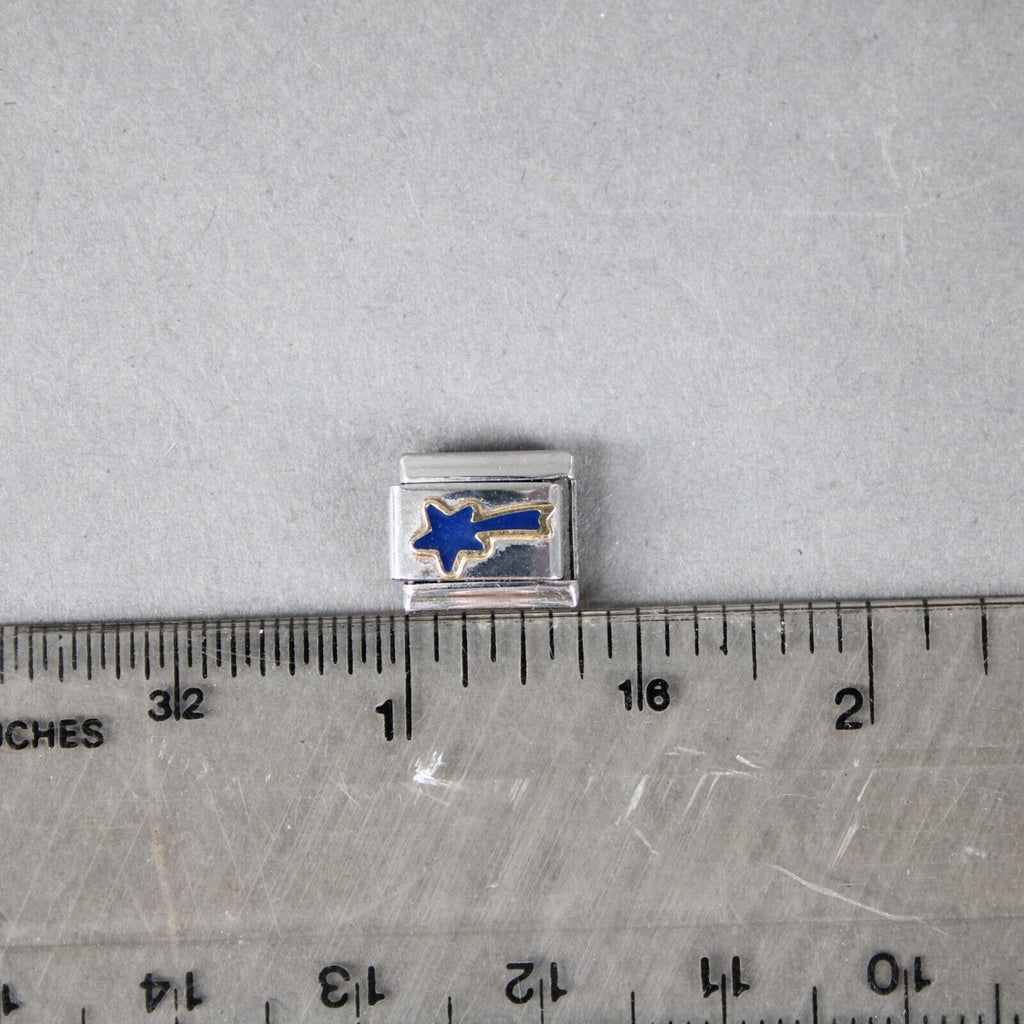 Boxing "Shooting Star" Stainless Steel Blue Enamel Stretch Link Italian Charm