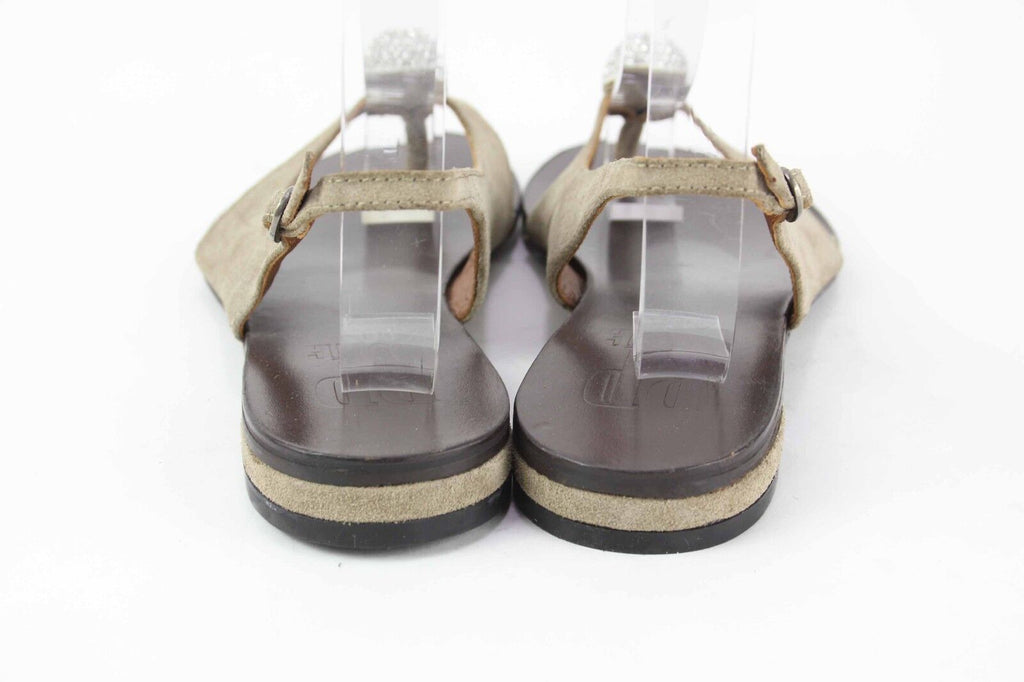 BP Zone Sz 37 Taupe Brown Rhinestone Toe Bauble Low Suede Leather Sandal