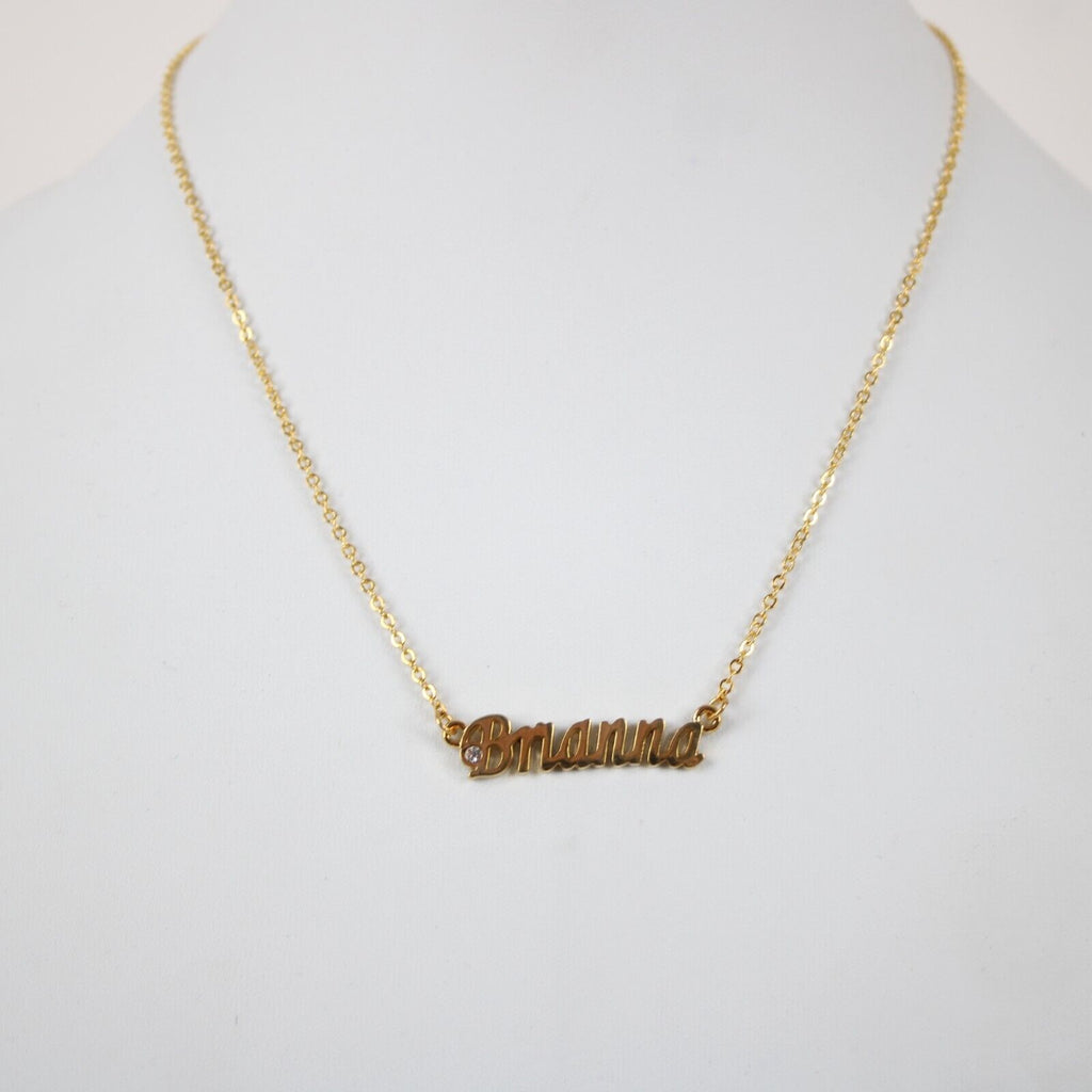 BRIANNA NEW Name Goldtone Rhinestone Accent 14.5" w 4.5" Multi Ring Ext Necklace