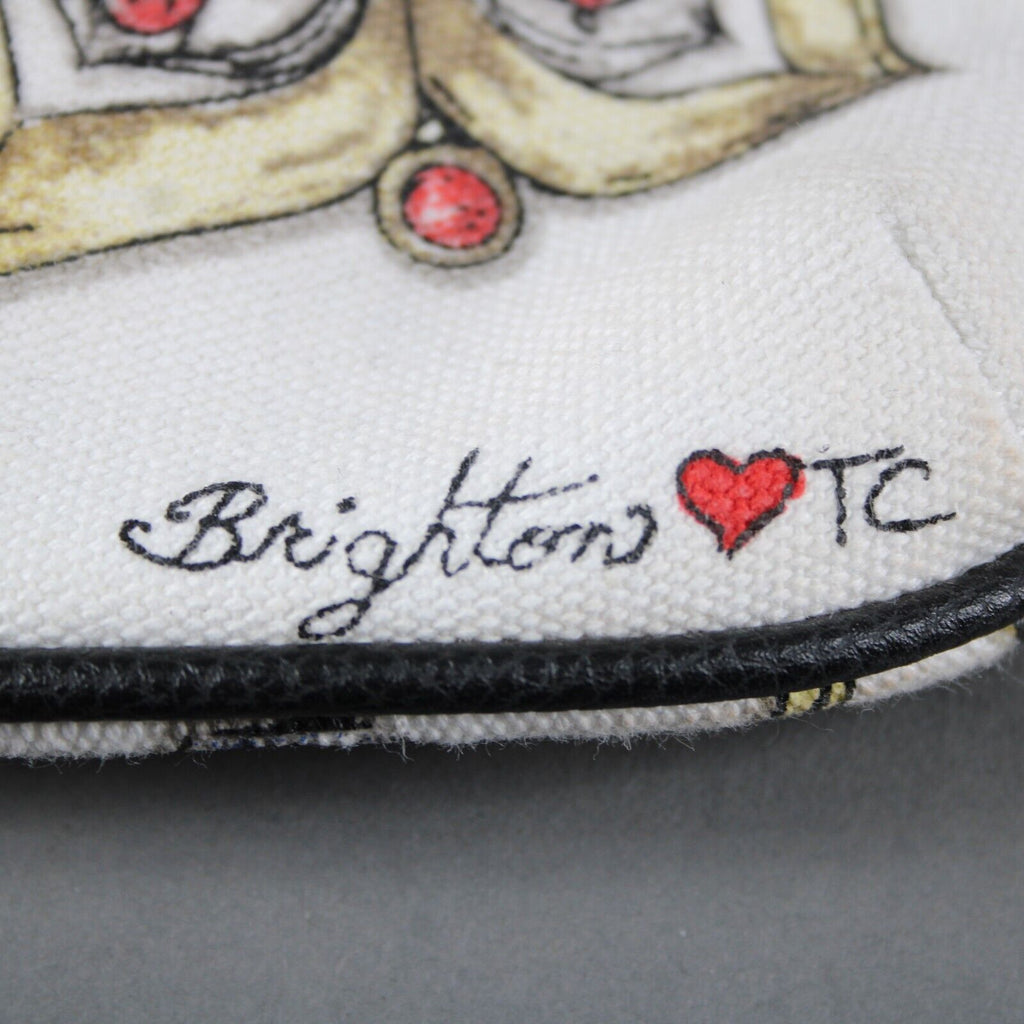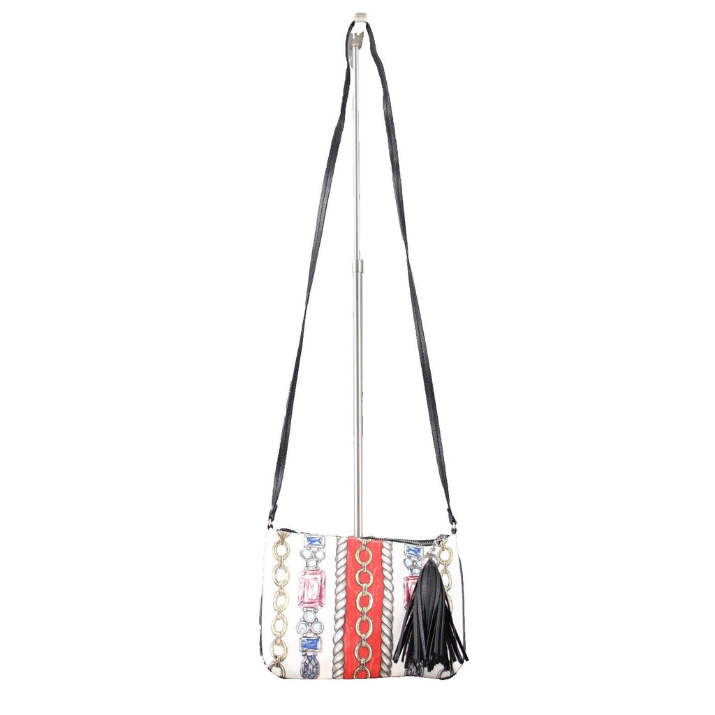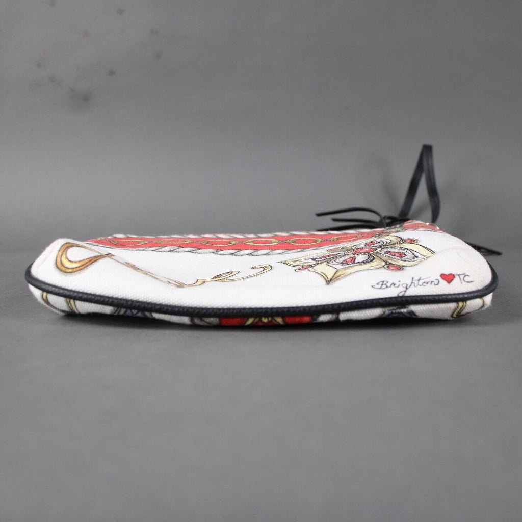 Brighton 10 x 8 1 White Red Multi Black Trim Cotton Poly Crossbody AS IS Purse