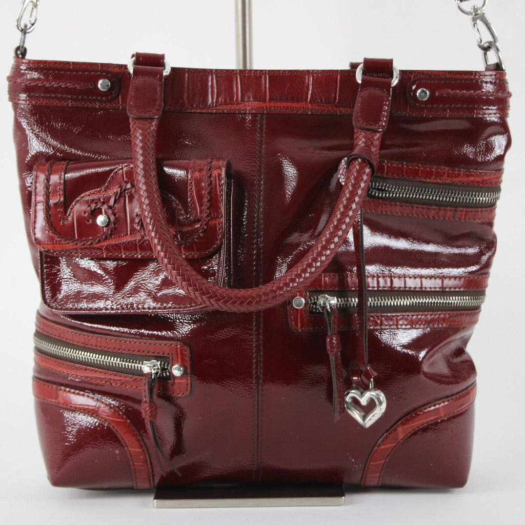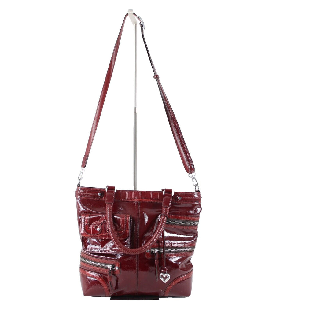 Brighton D562469 13 x 12 x 3 Burgundy Red Inner Pockets Patent Leather Purse