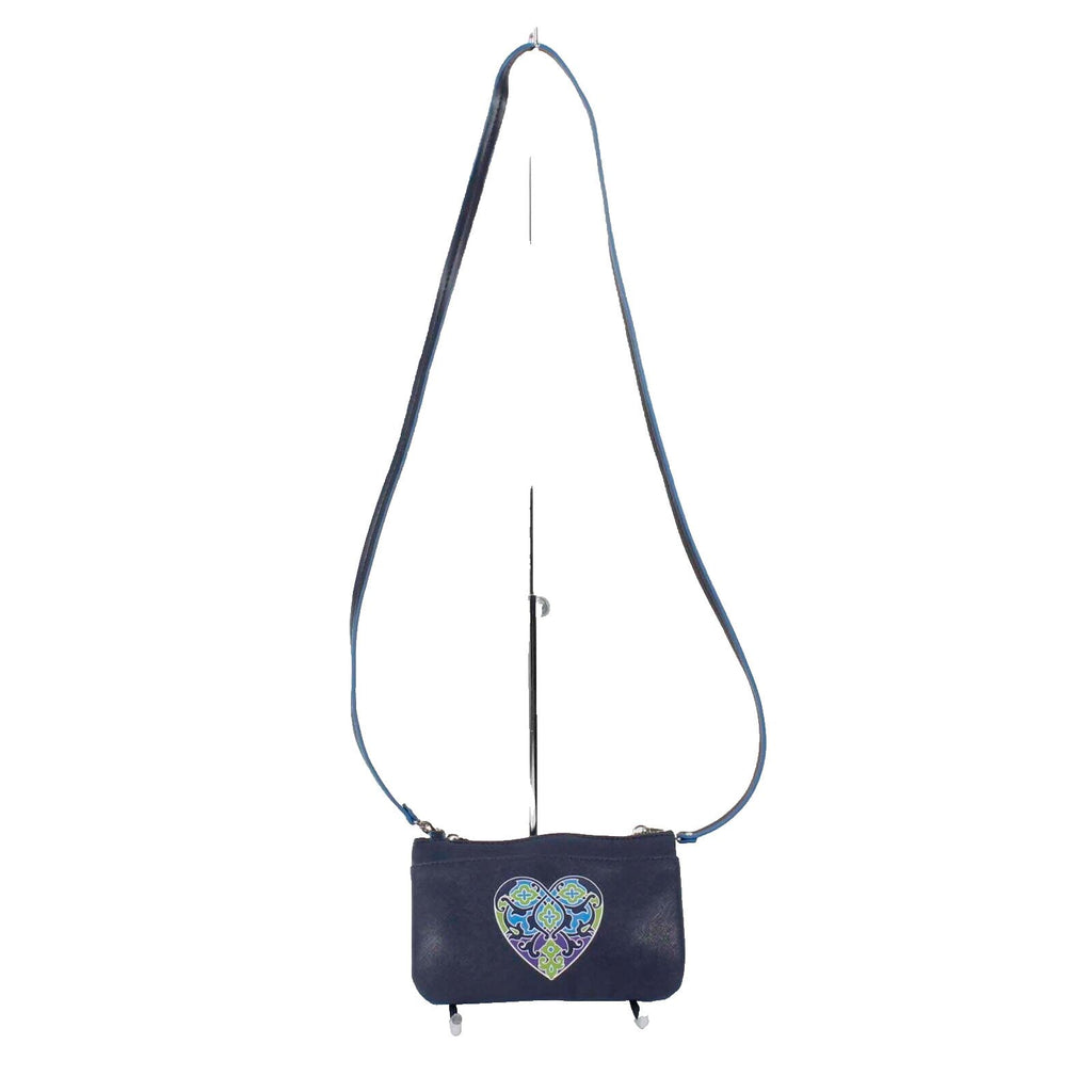 Brighton Sz 5 x 8 Blue Multi Zip Top Crossbody Clutch Faux Leather Purse