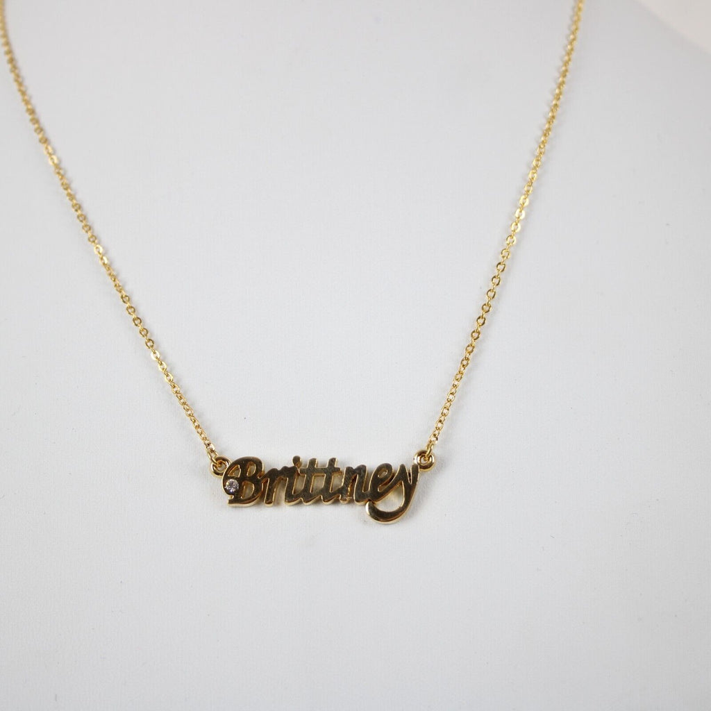 BRITTNEY NEW Name Goldtone Rhinestone Accent 14.5" Multi Ring 4.5" Ext Necklace