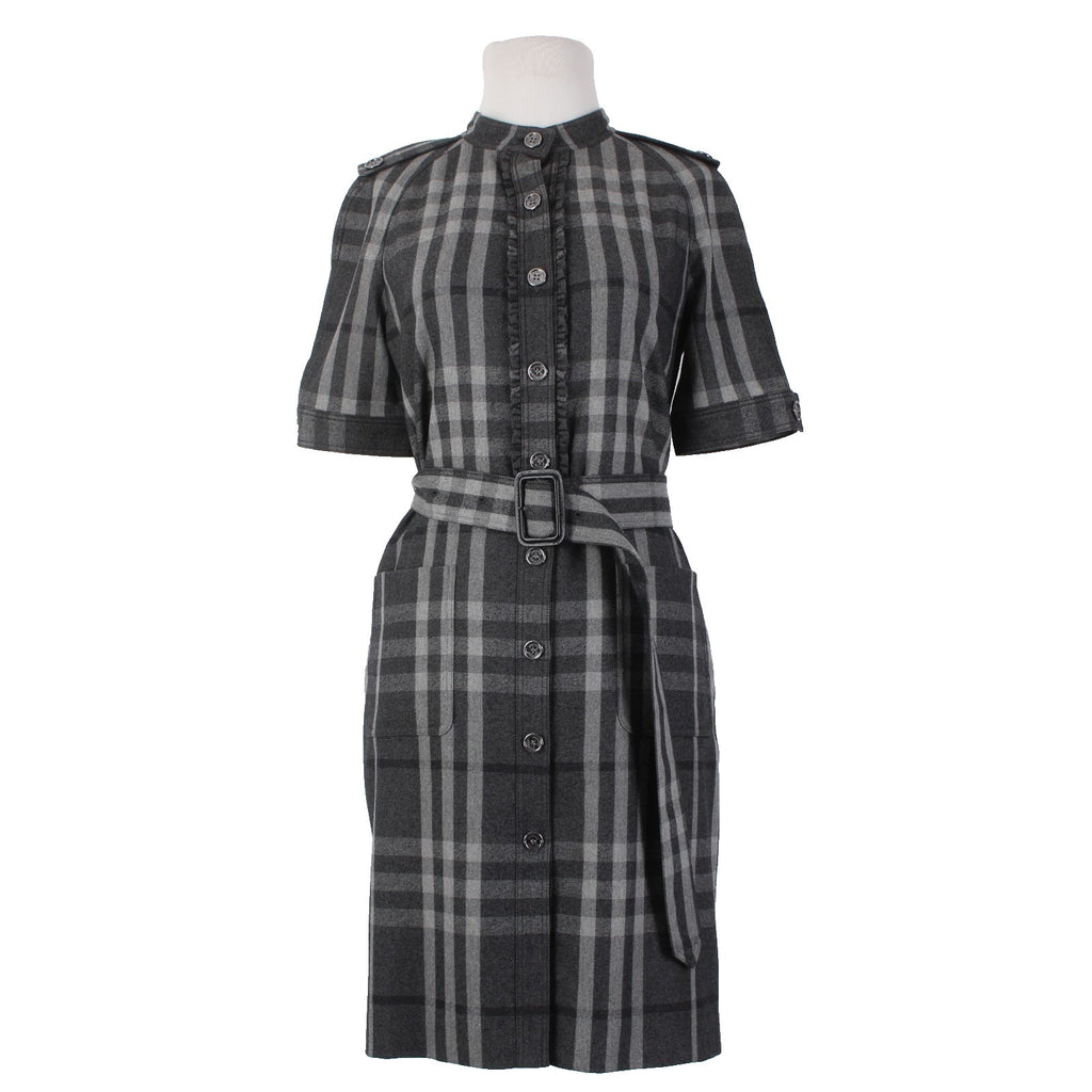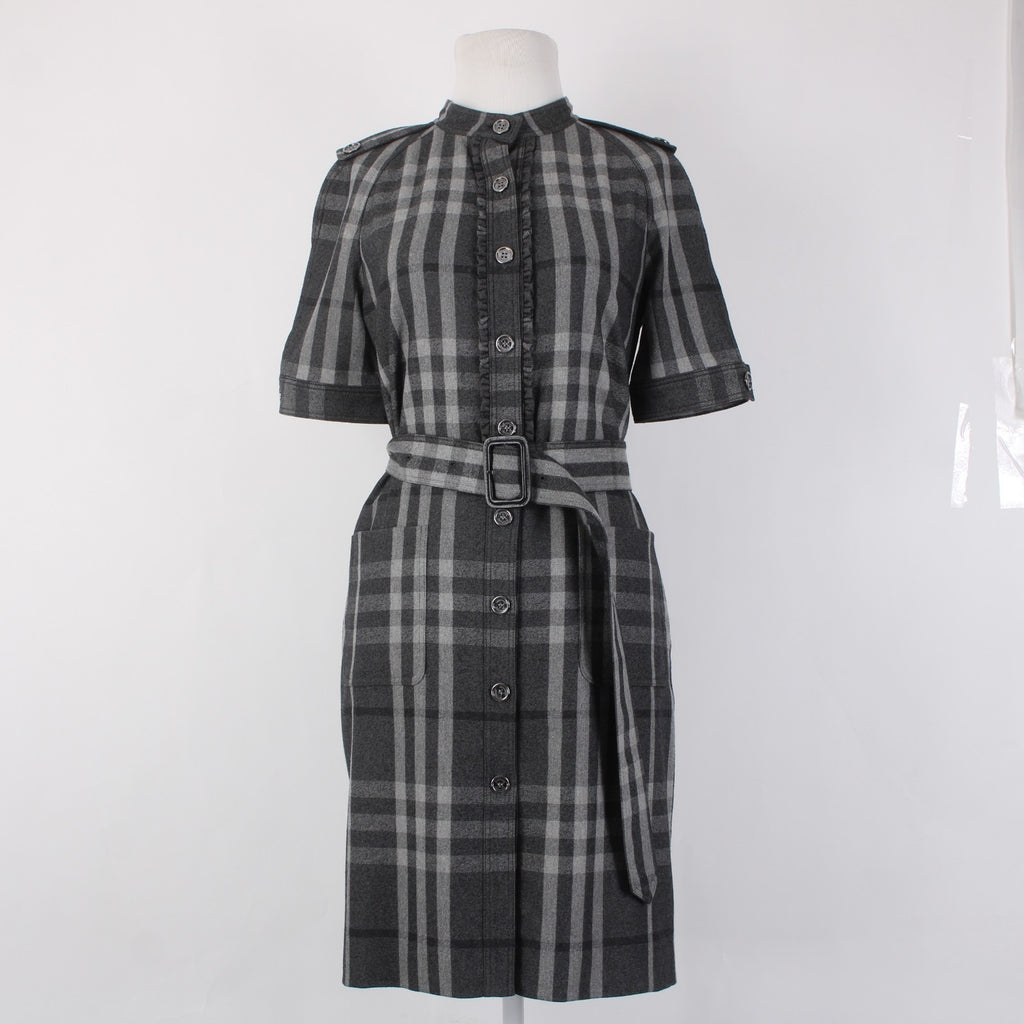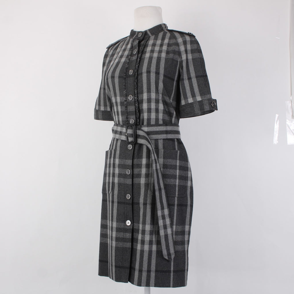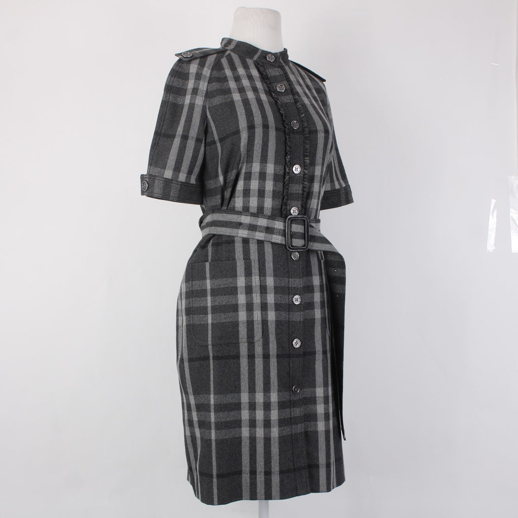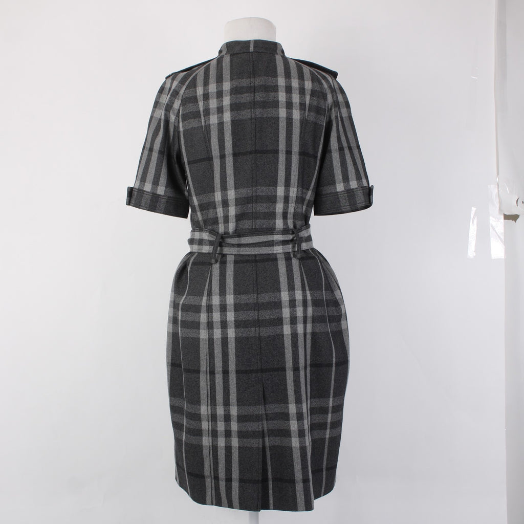 Burberry London Dress Sz 6 Gray Black Plaid Belted Lined Wool Nylon Dress
