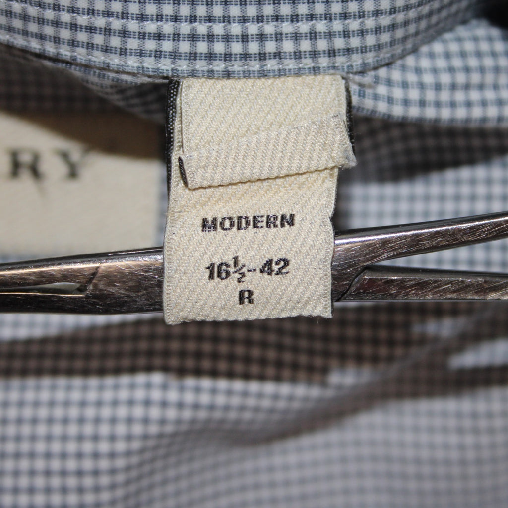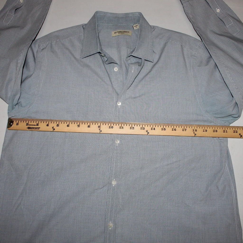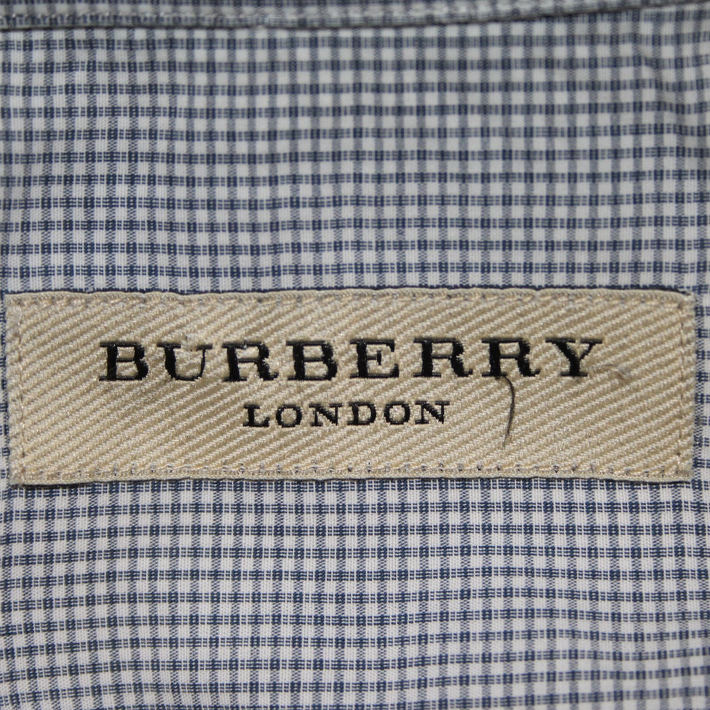 Burberry Shirt Sz 16.5 Navy Blue White Collared Button Down 100% Cotton Shirt