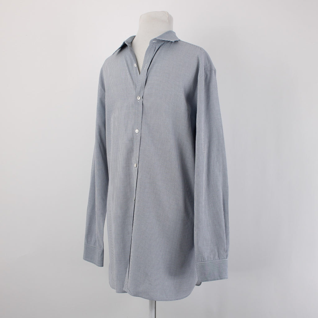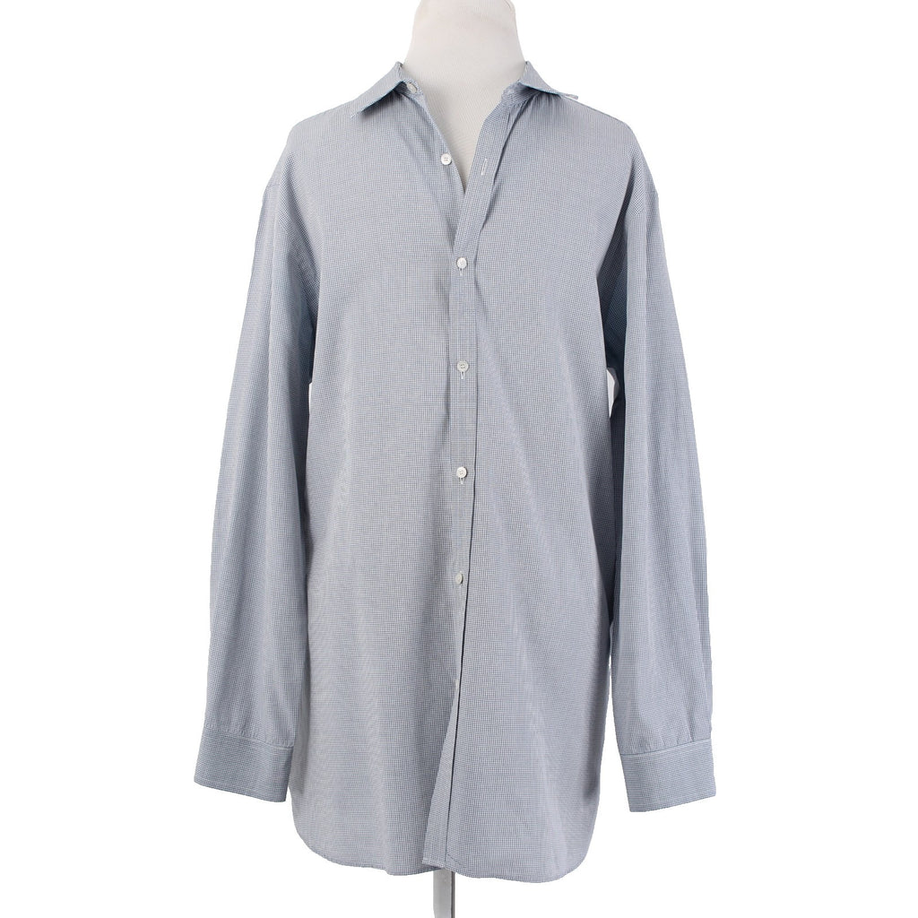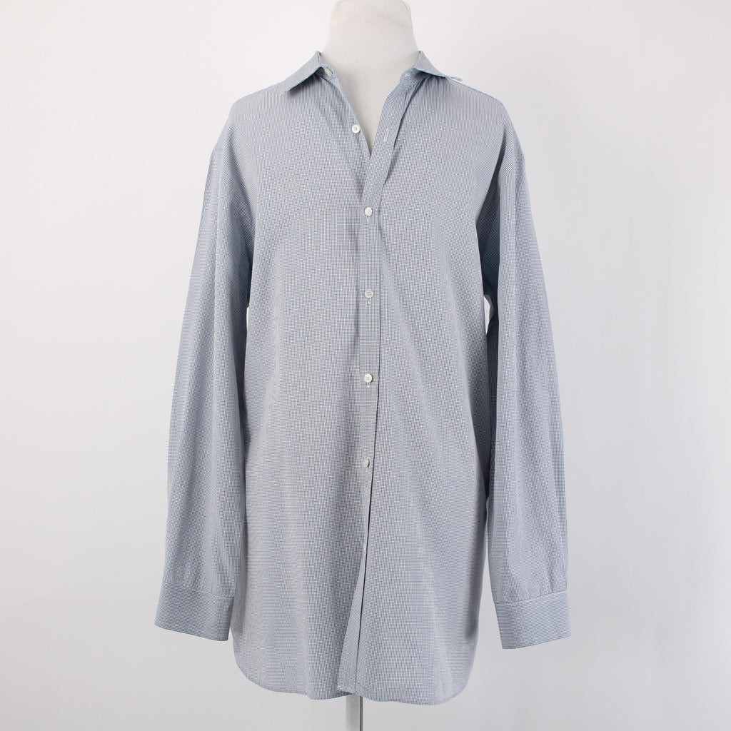 Burberry Shirt Sz 16.5 Navy Blue White Collared Button Down 100% Cotton Shirt