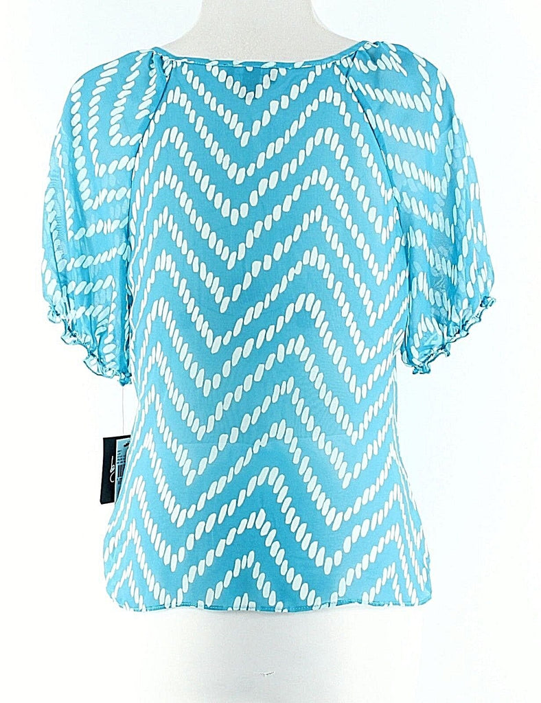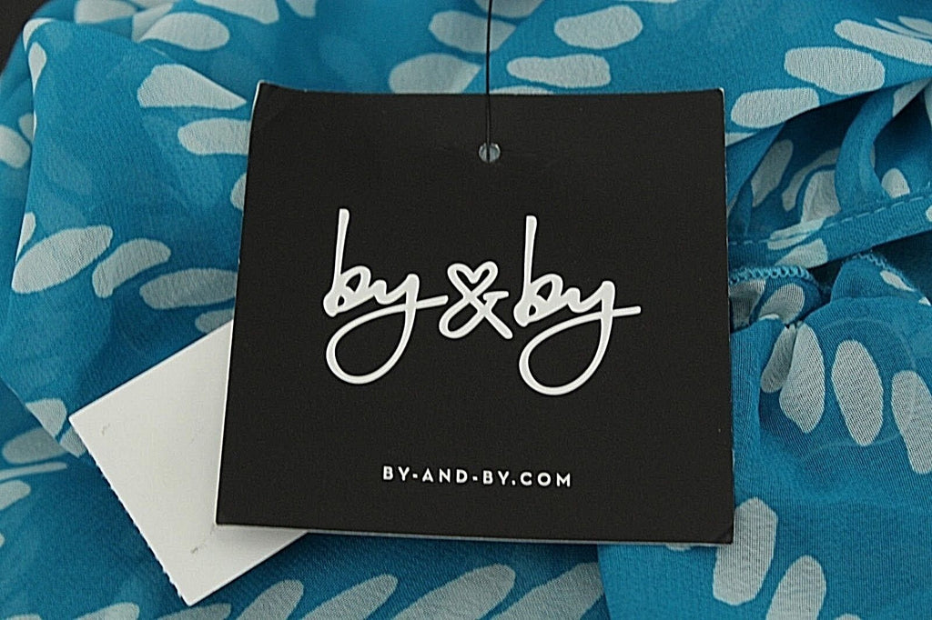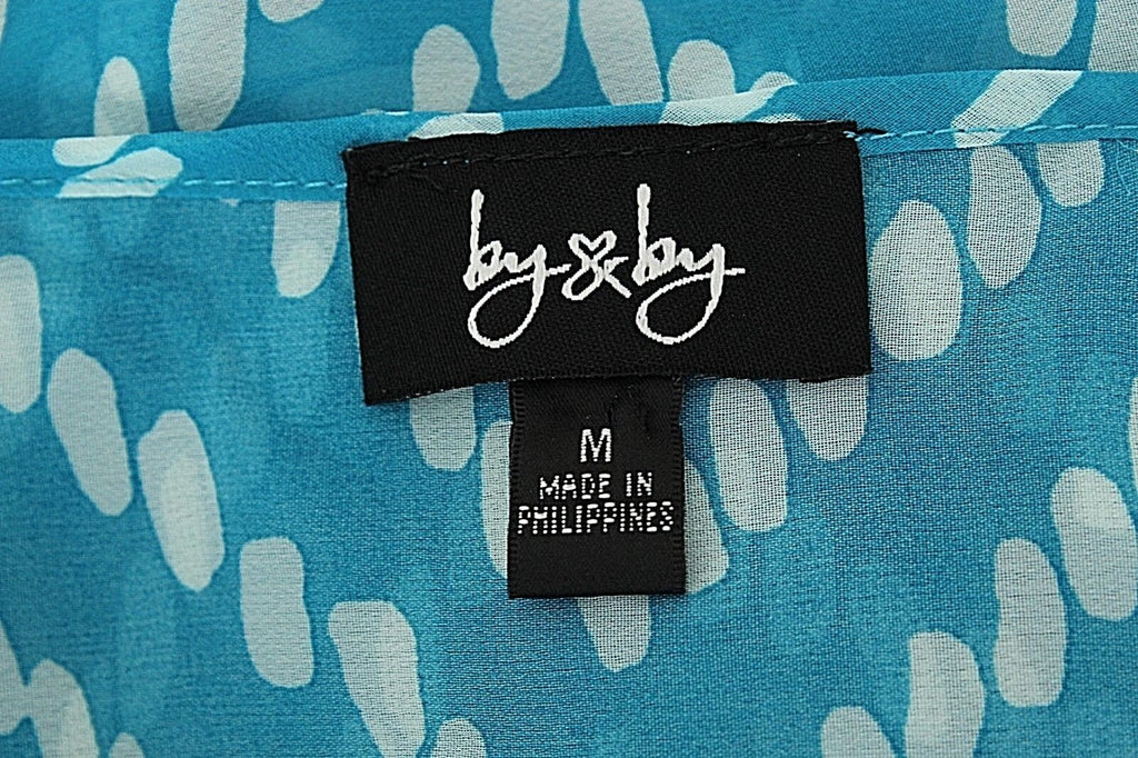 By & By NEW Size M Aqua White Button Front Tie Bottom 100% Polyester Top