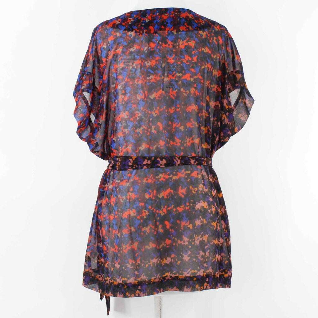Cabi NEW Sz M Navy Multicolor V Neck Sheer Abstract 100% Polyester Top