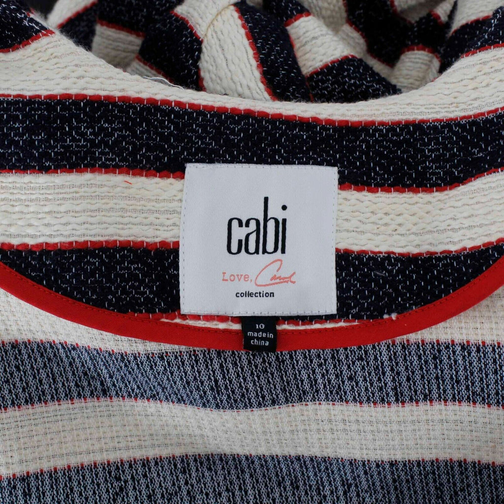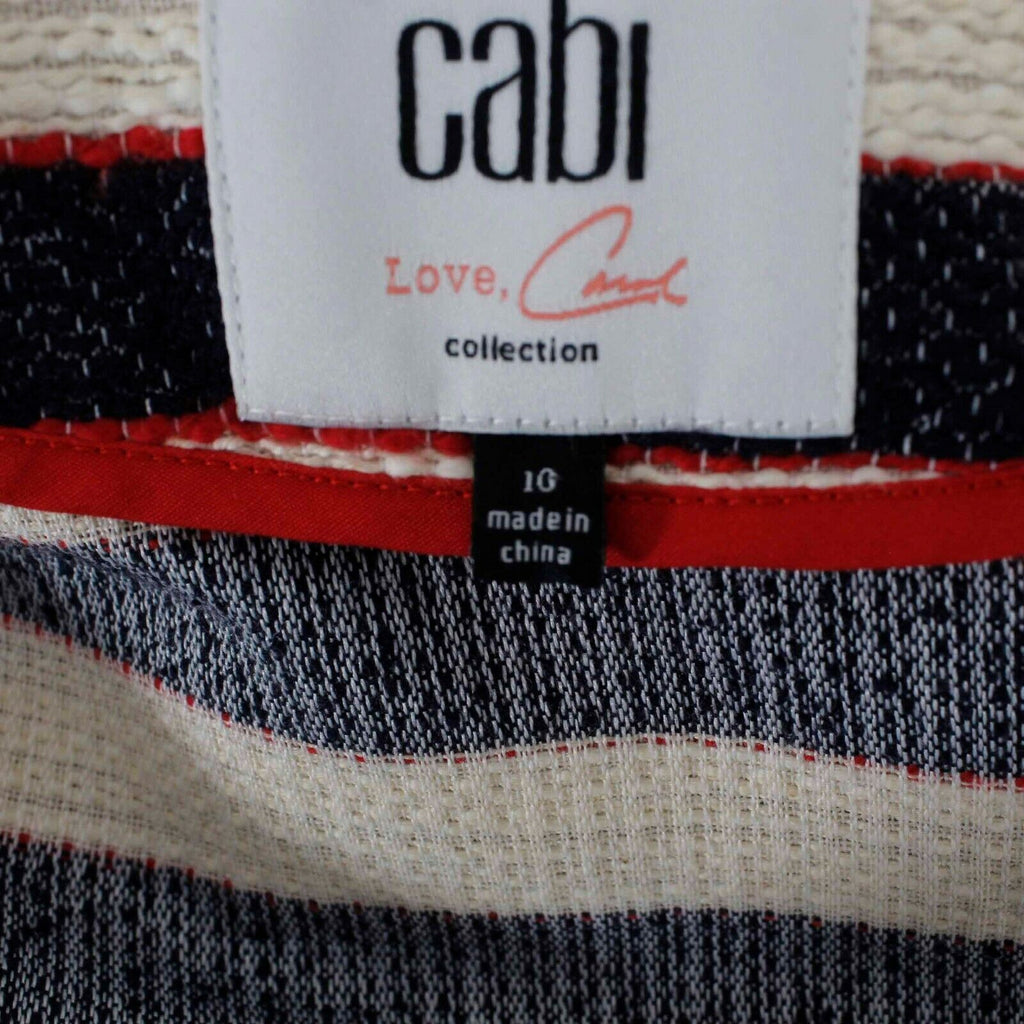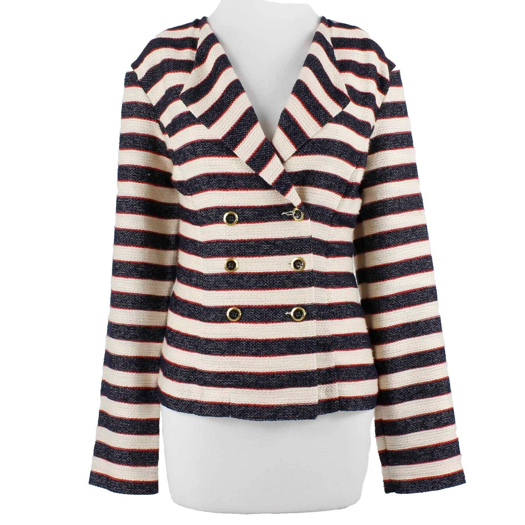 Cabi Sz 10 Cream Navy Red Double Breasted Cotton Blend Tight Knit Jacket