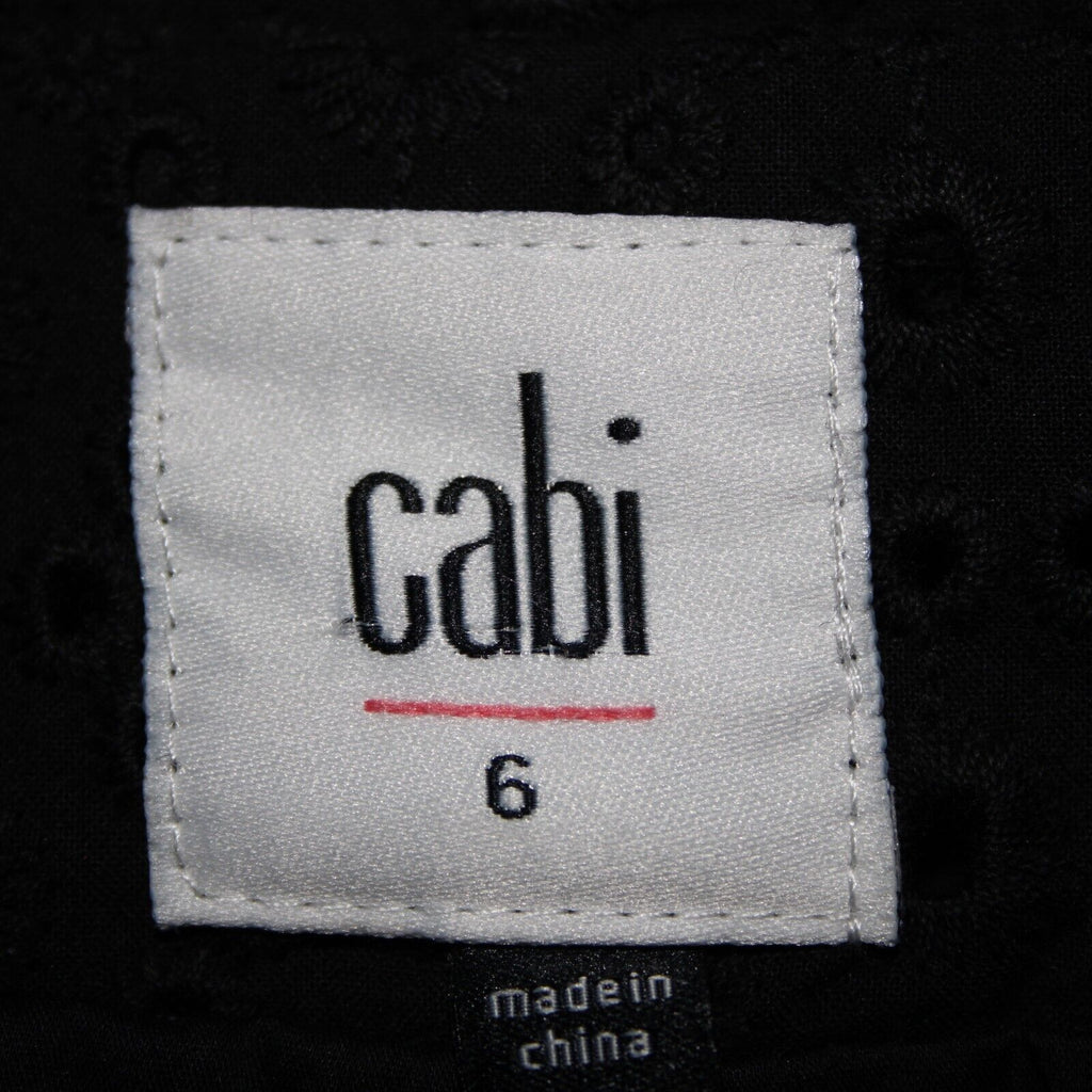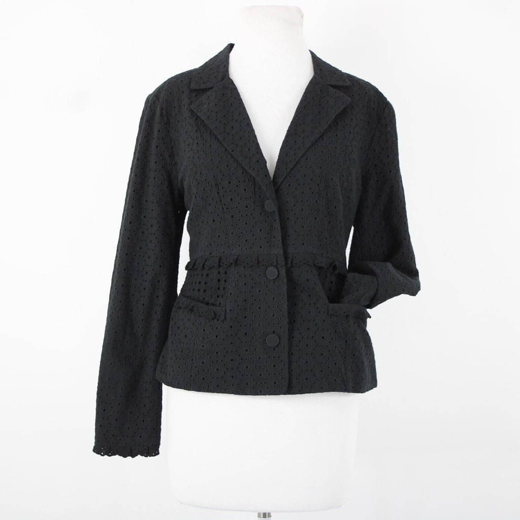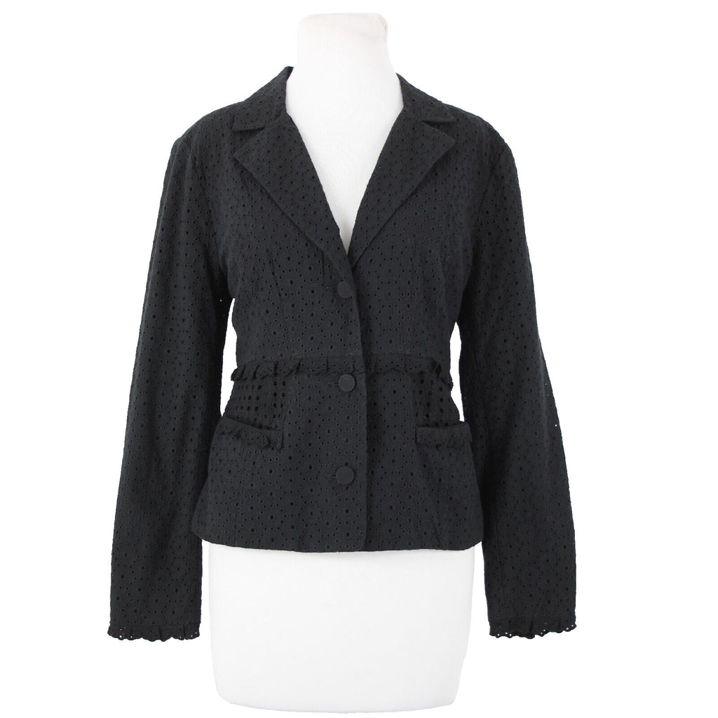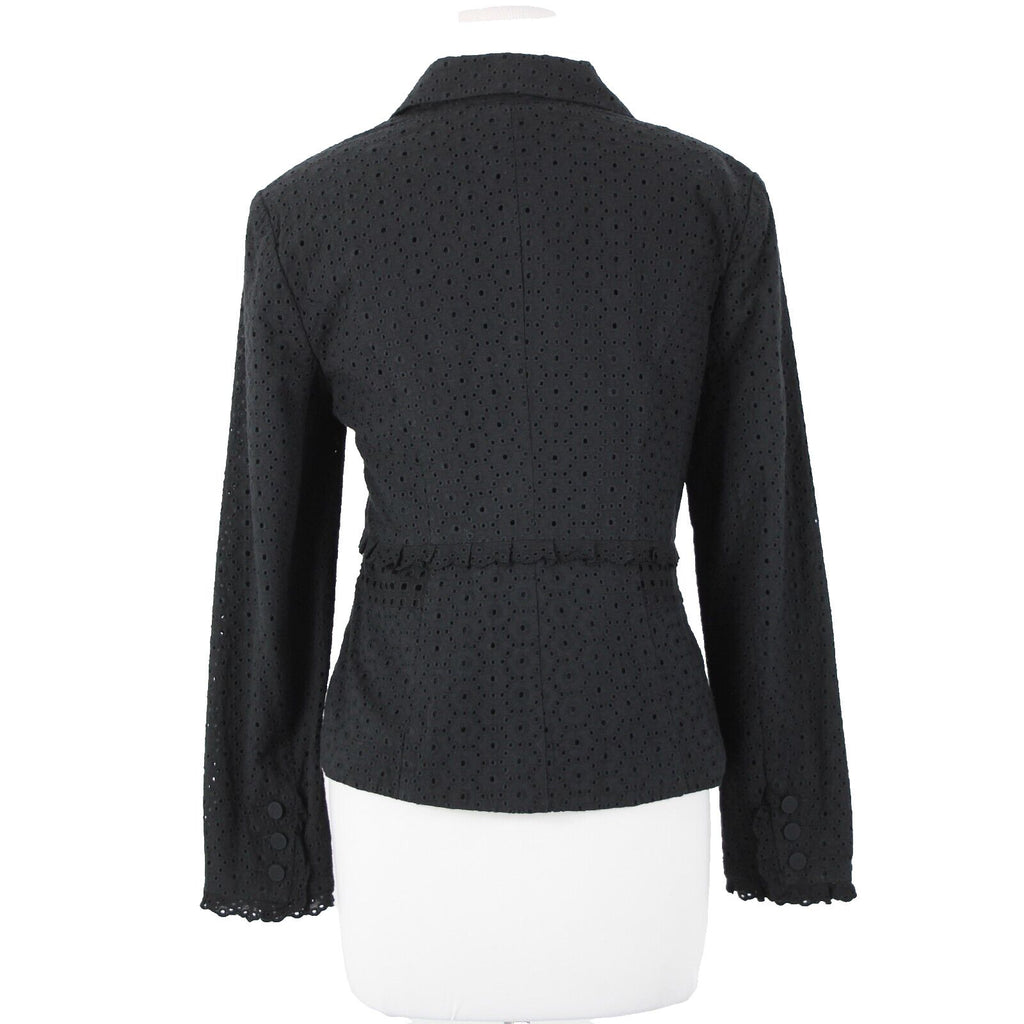 Cabi Sz 6 Black Embroid Eyelet Cutwork Trim Button Collared 100% Cotton Blazer