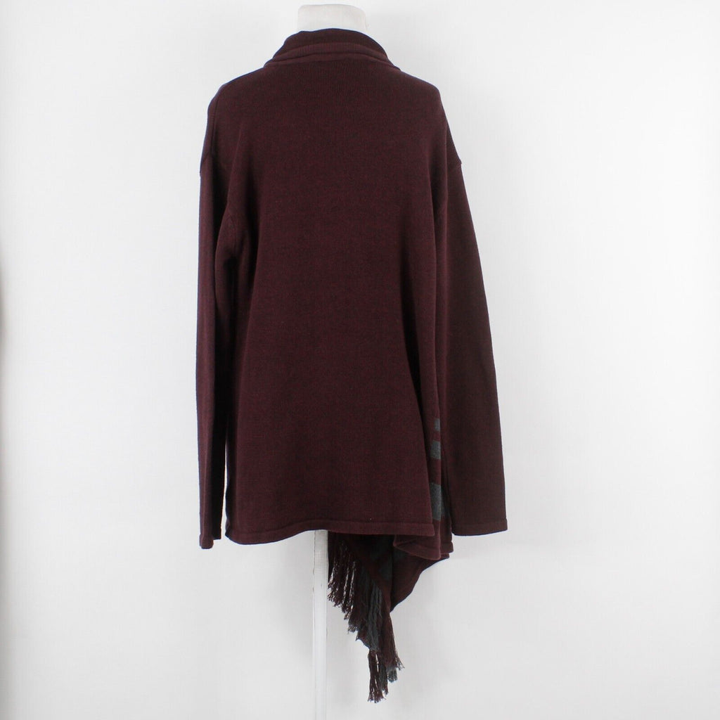 CAbi Sz M Burgundy Gray Fringe Detail 1 Neck Button Wrap Around Cotton Wrap
