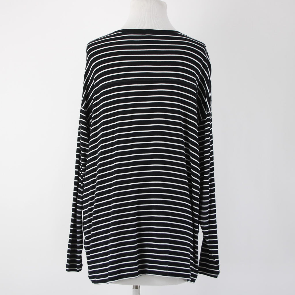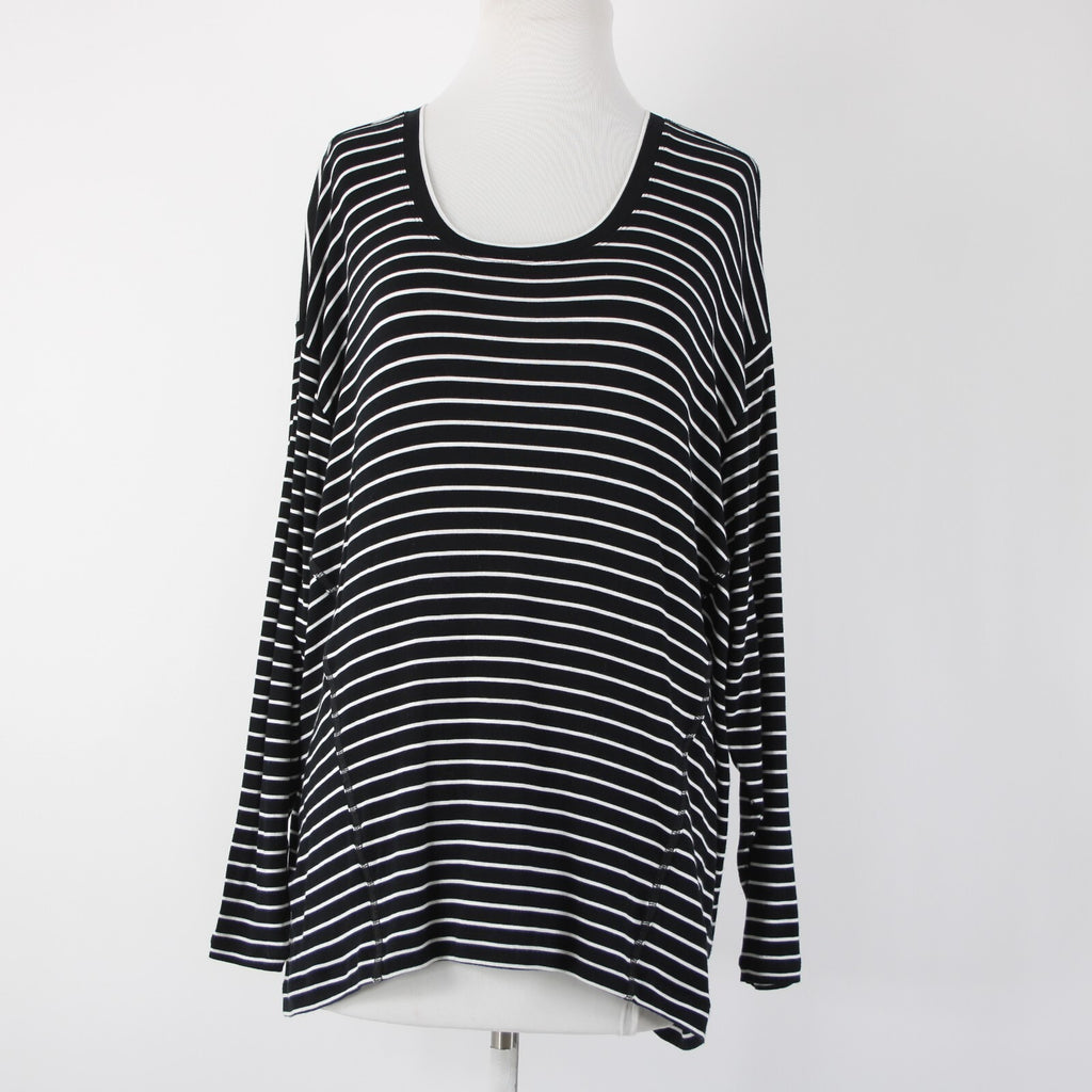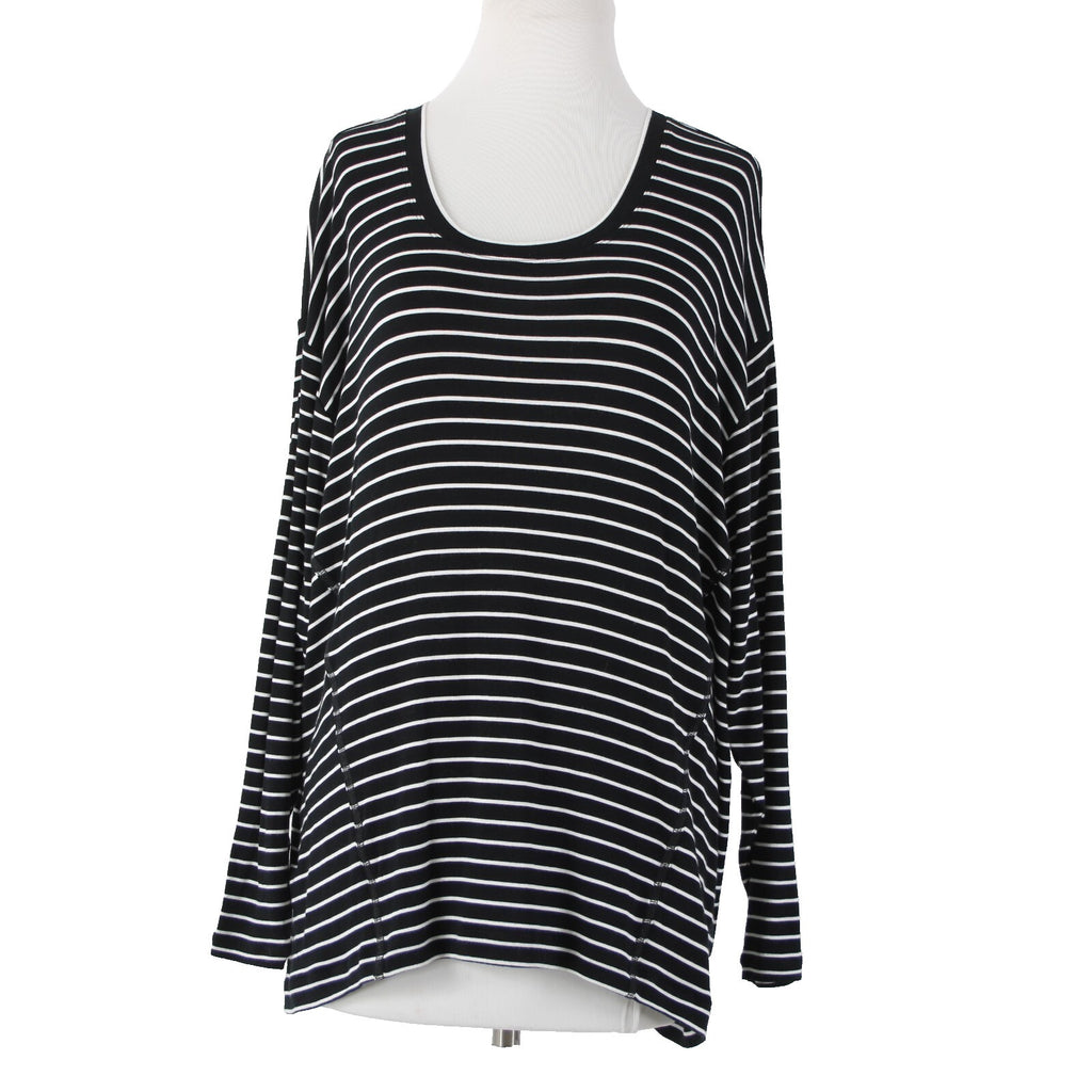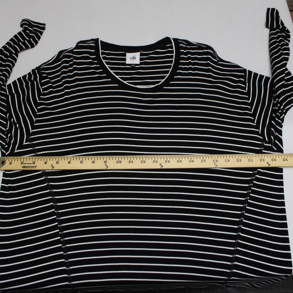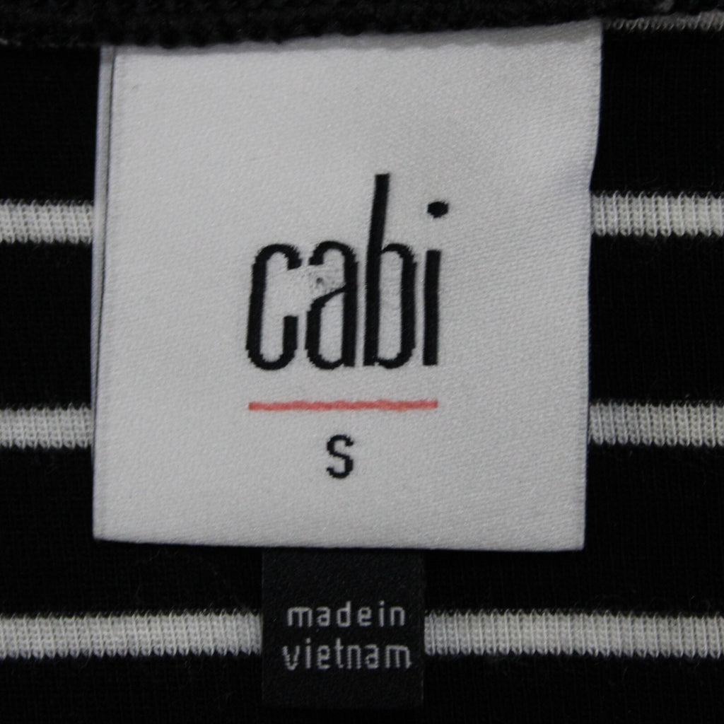 Cabi Sz S Black White Striped Round Neck Long Sleeve Rayon Spandex Top