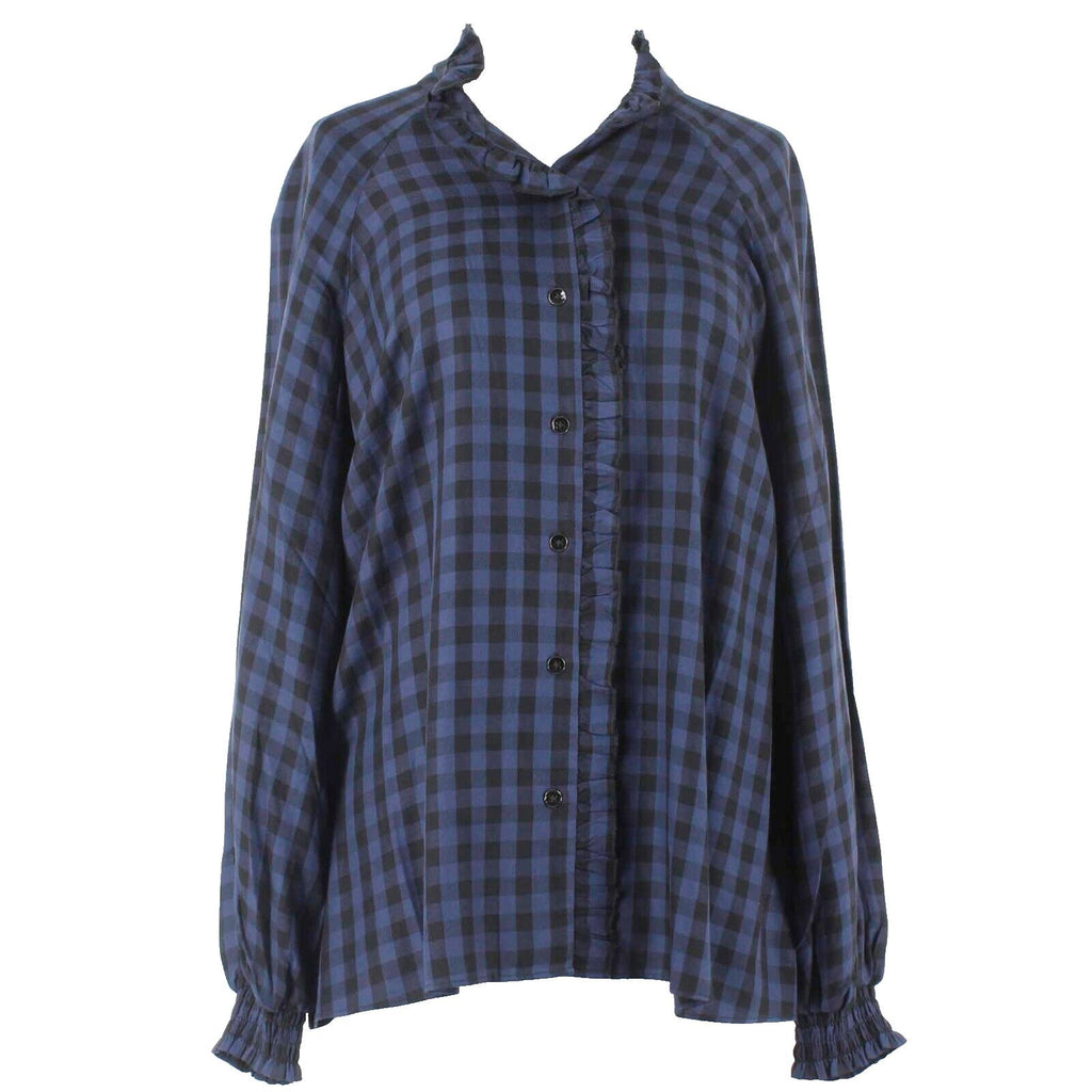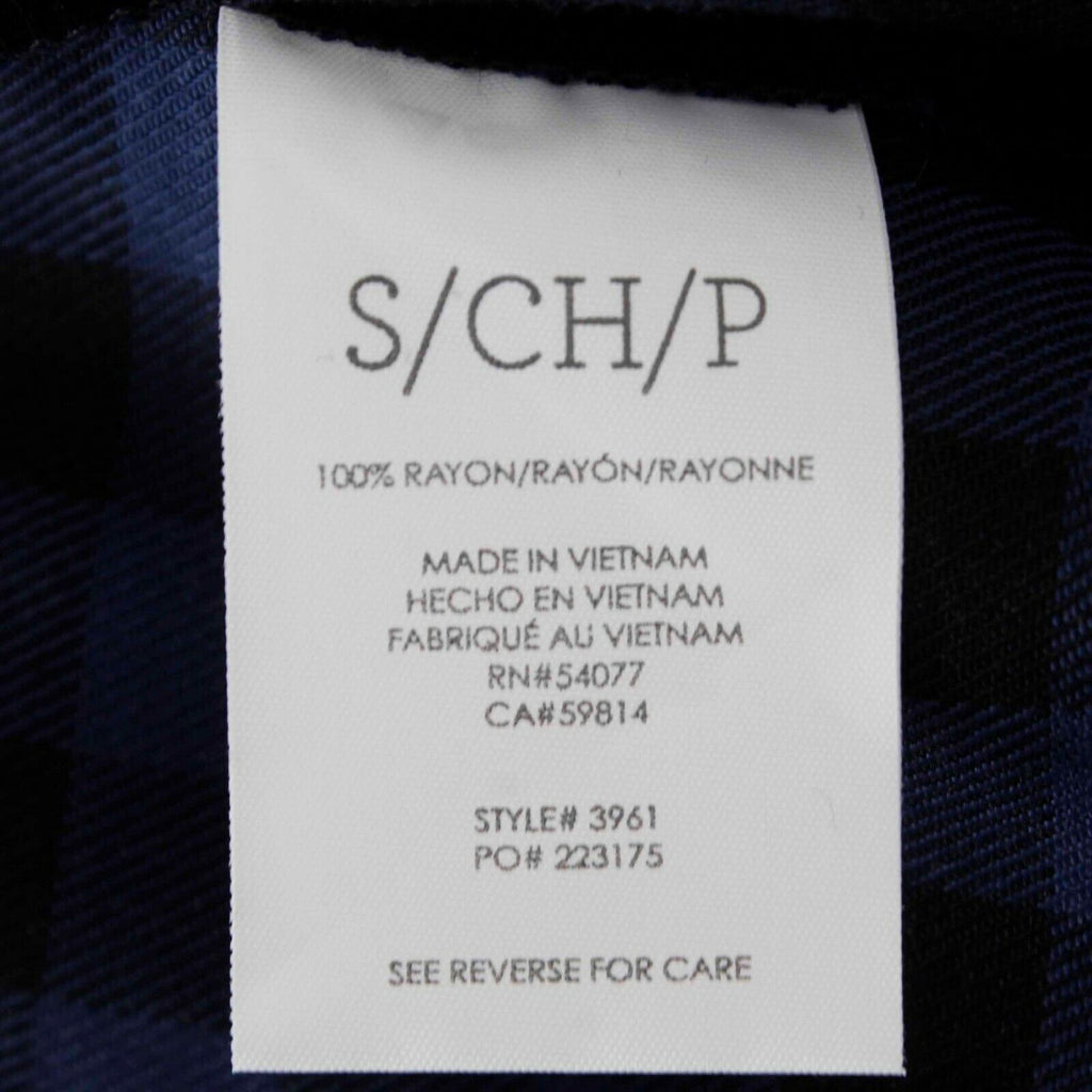 Cabi Sz S Navy Black Collared Button Down Checkered 100% Rayon Top