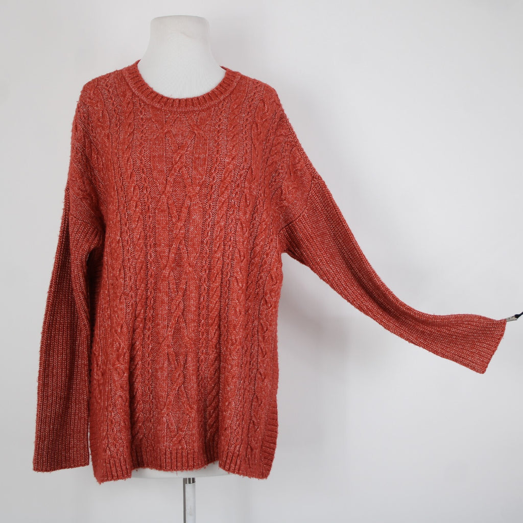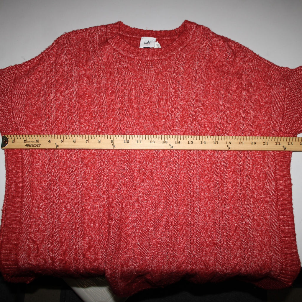 Cabi Sz S Red White Knit Long Sleeve Over Sized Cotton Acrylic Sweater