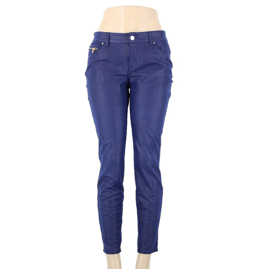 Cache Sz 8 x 29 Blue Gold Hardware Textured Pockets Polyester Spandex Pant