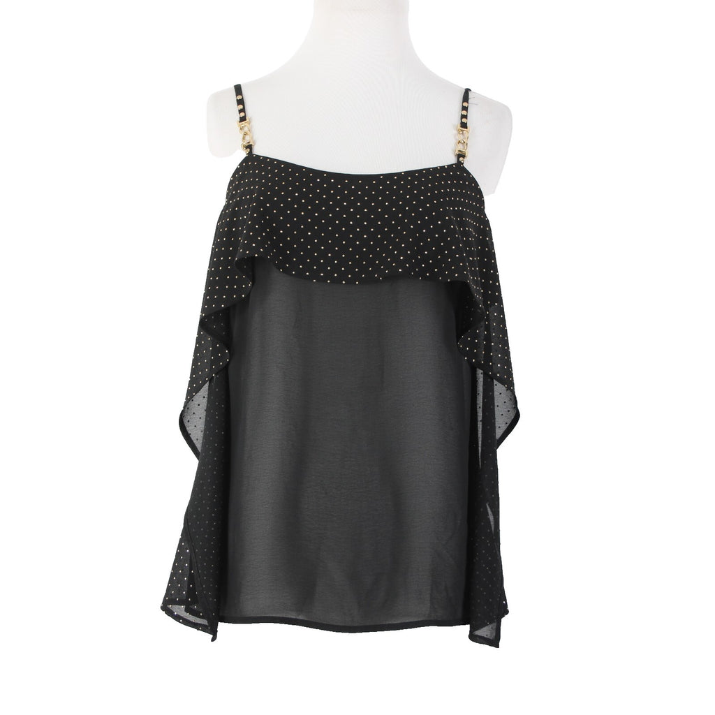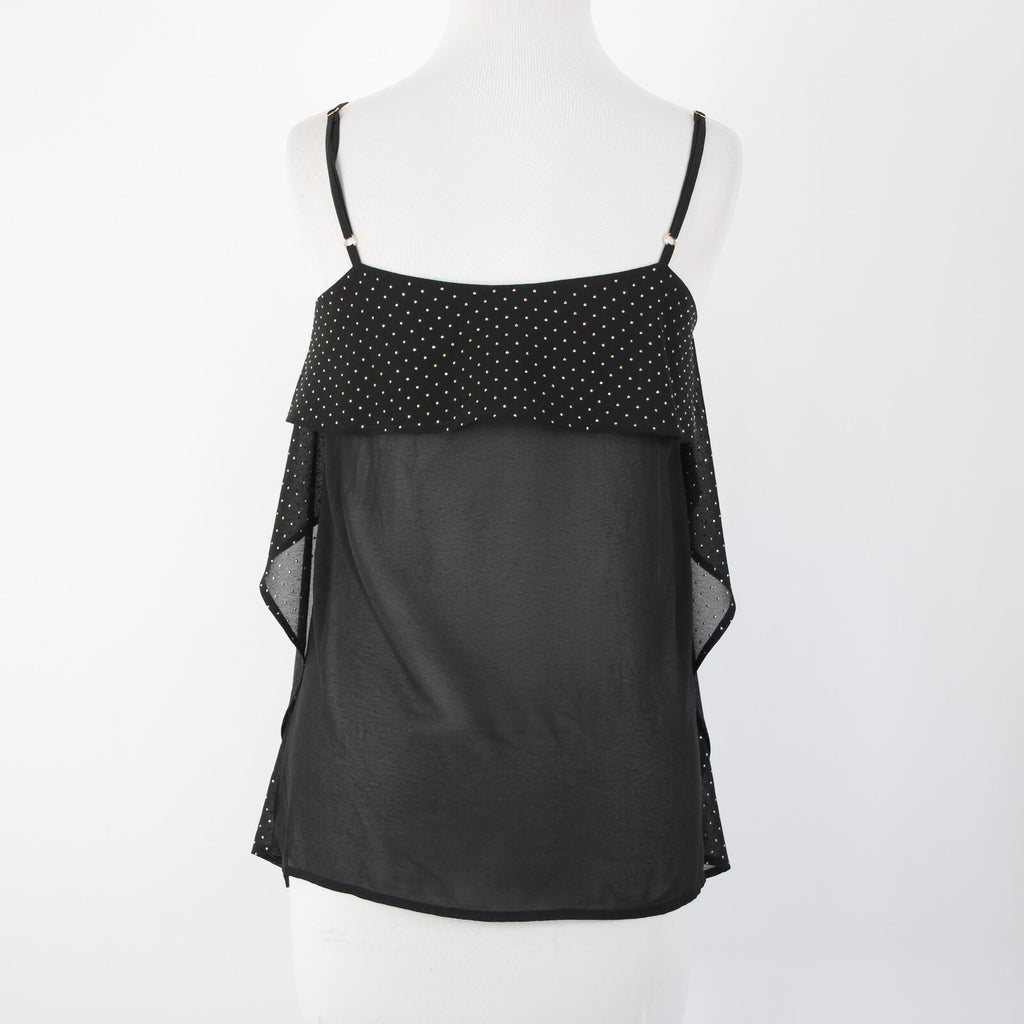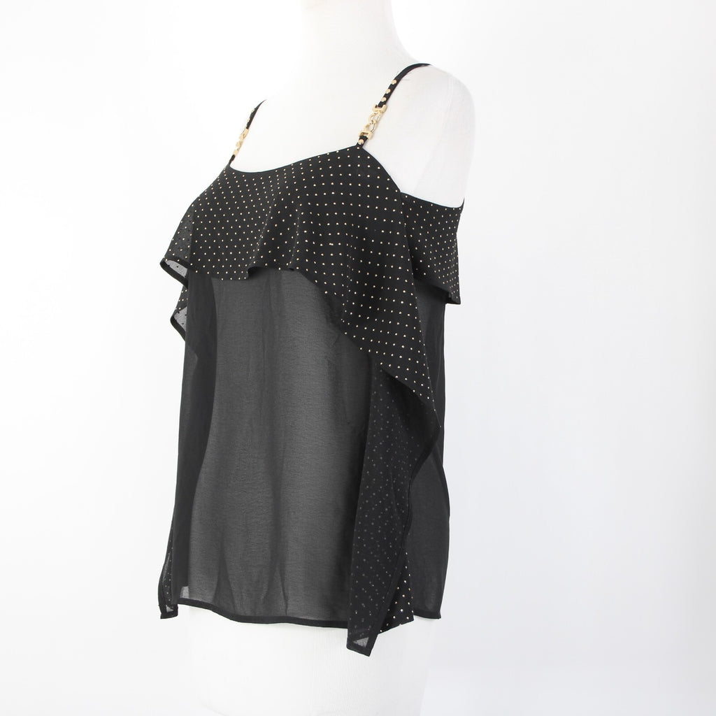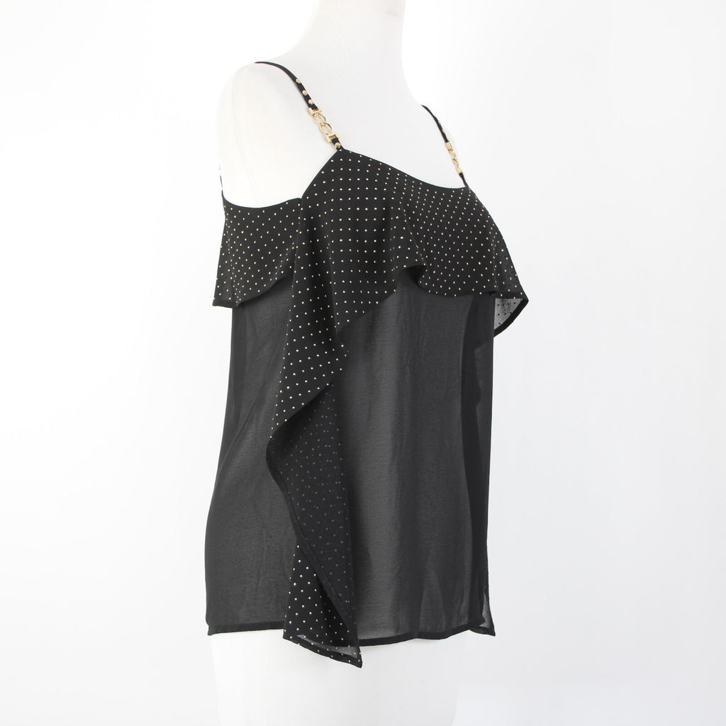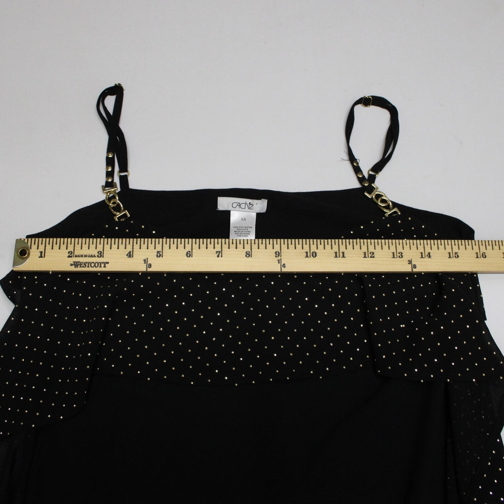Cache Sz XS Black Gold Studs Sheer Ruffle 100% Polyester Top