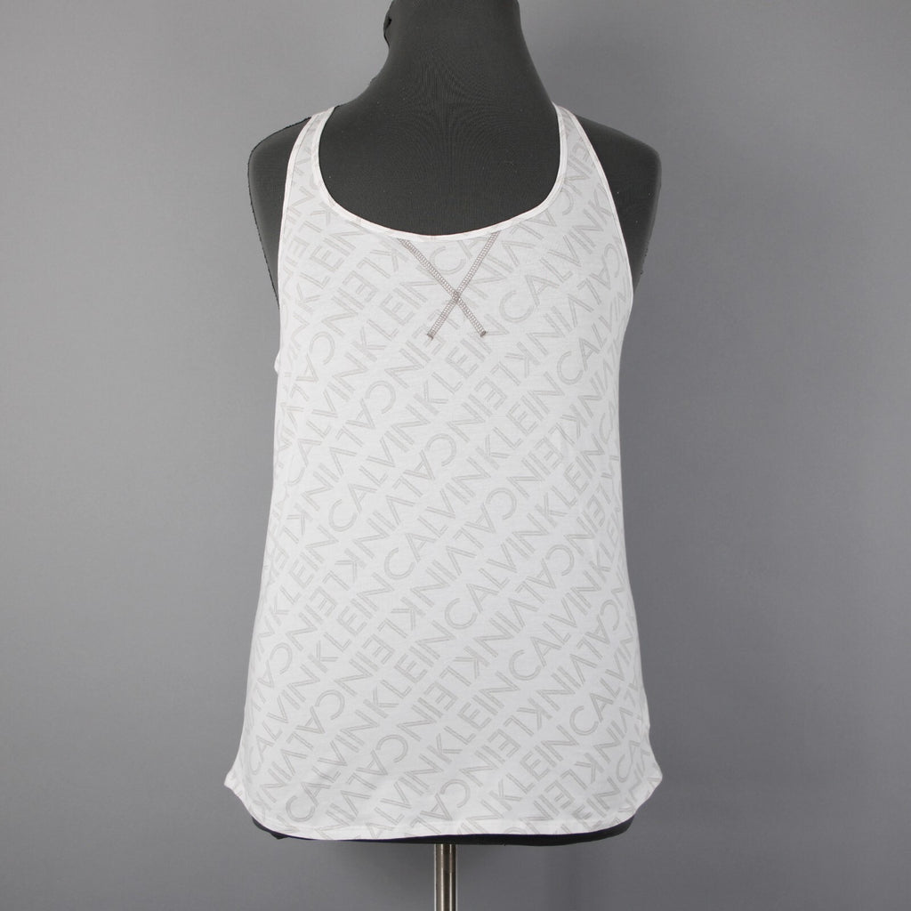 Calvin Klein Sleepwear NEW $59 Sz XL White Taupe Racerback Cotton Blend Cami Top