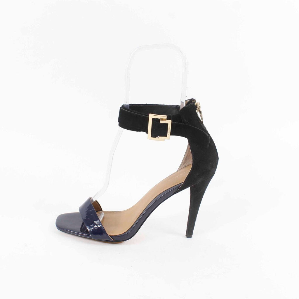Calvin Klein Sz 9 Black Navy Blue Mixed Materials High Heel Ankle Strap Sandal