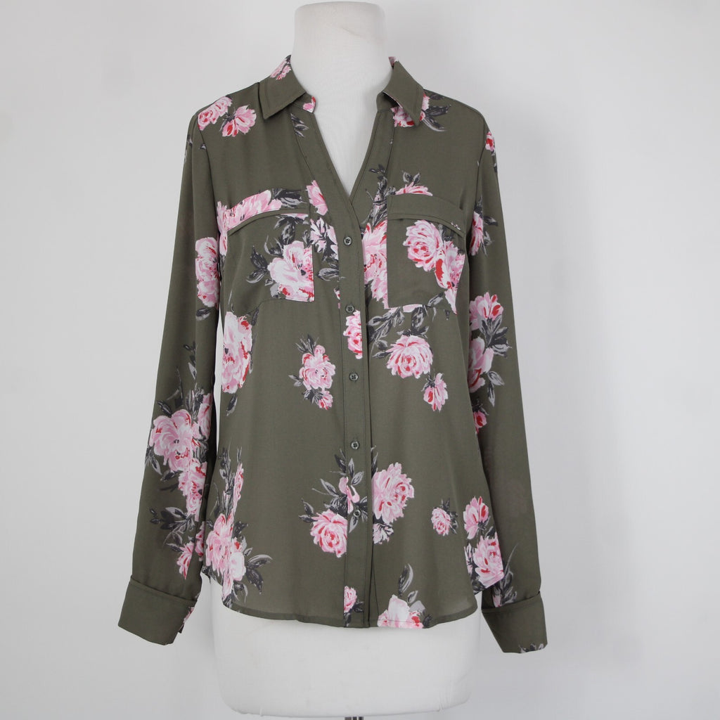 Candies $38 Zeniflora Sz S Pink Multi Color Floral Buttons 100% Polyester Top