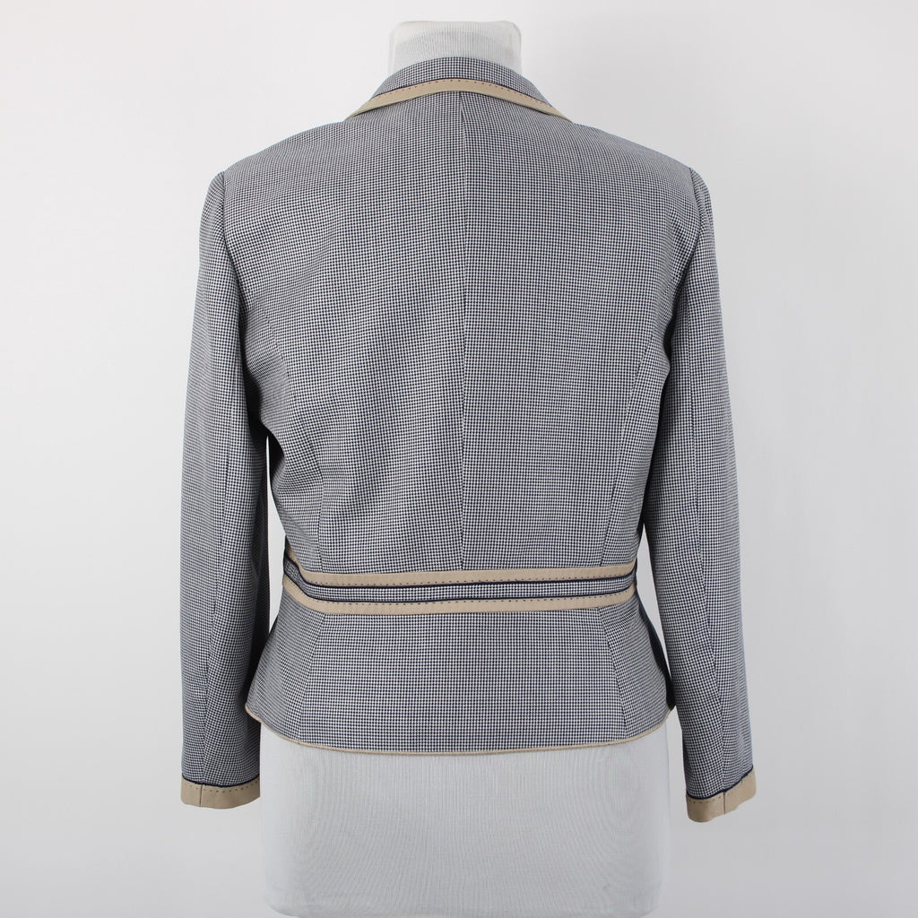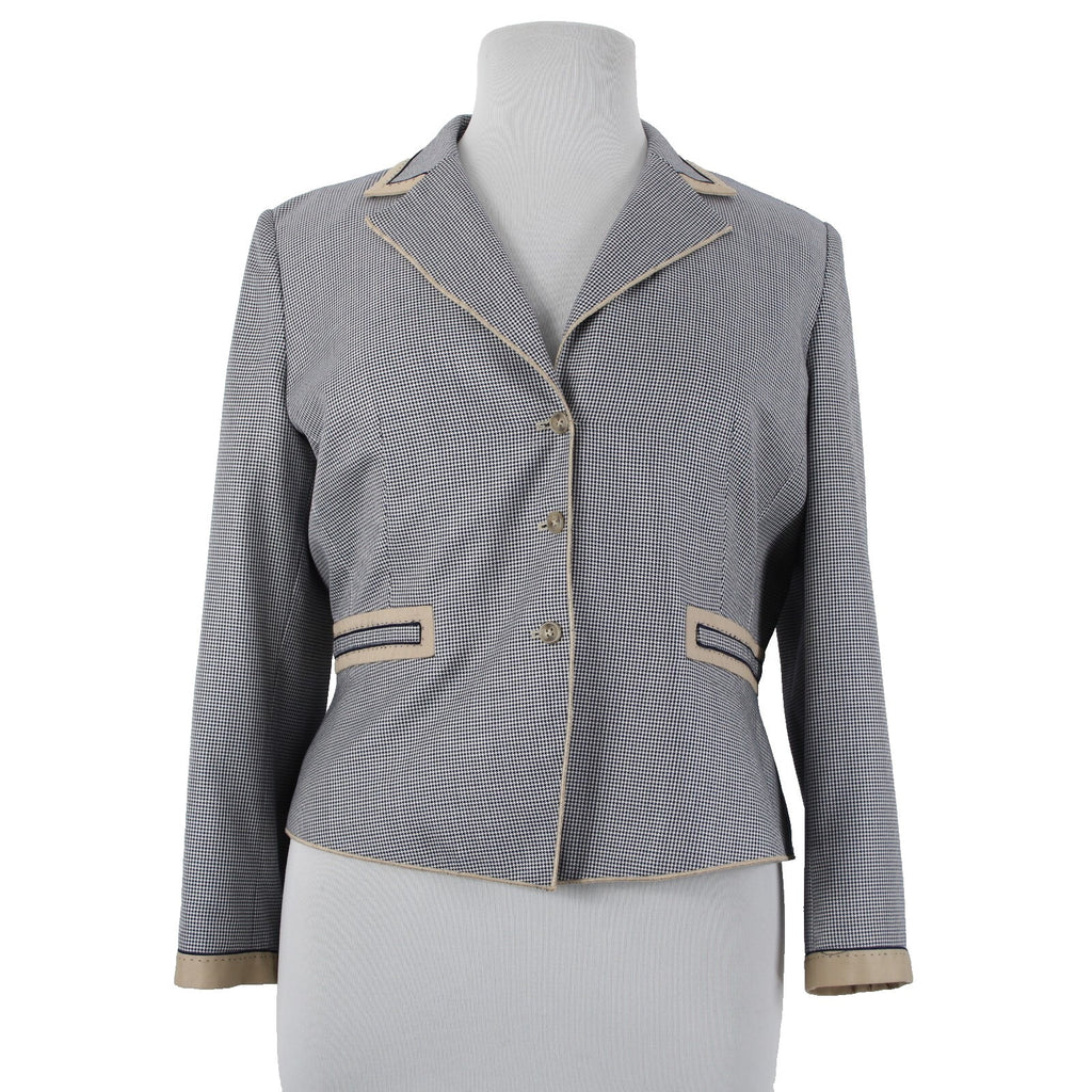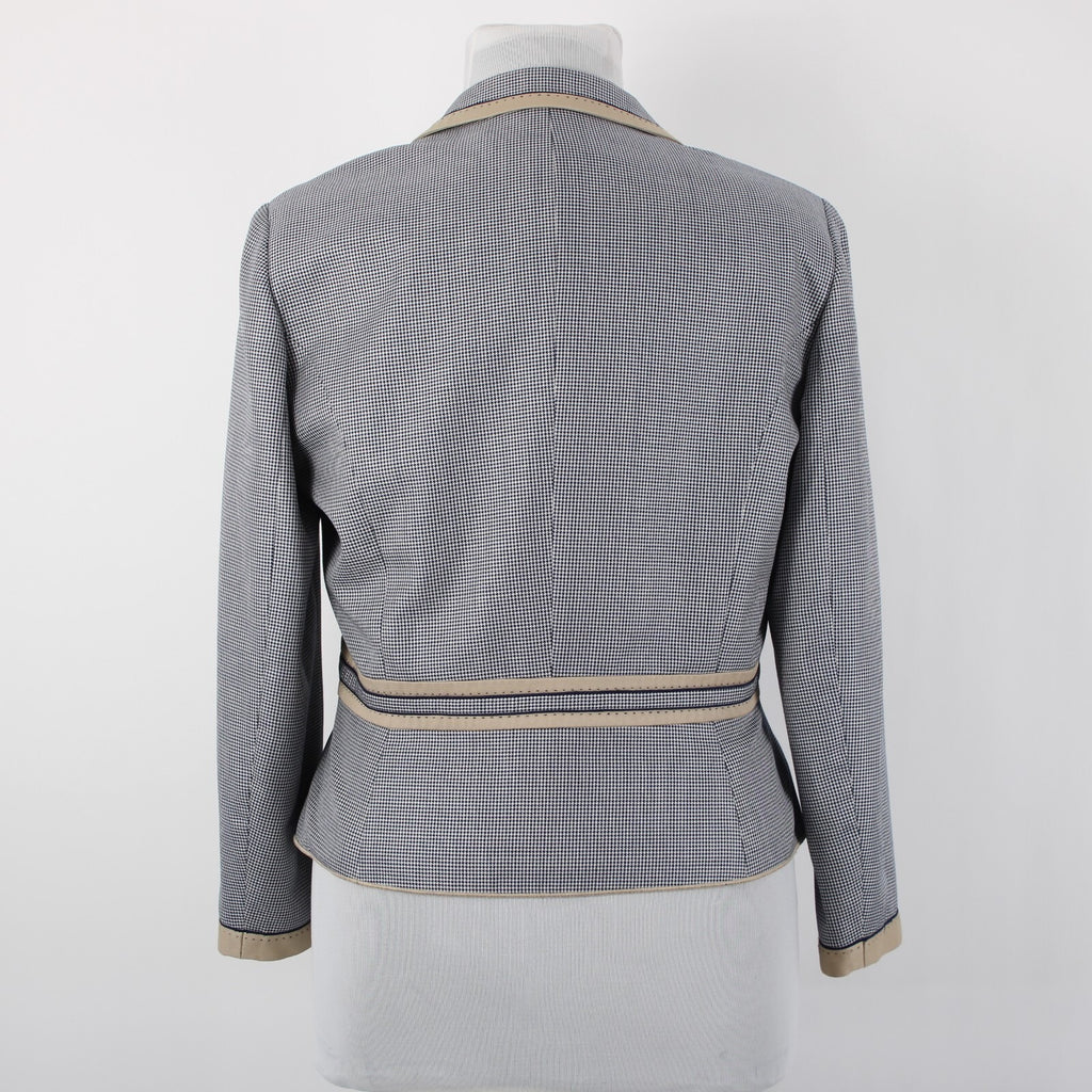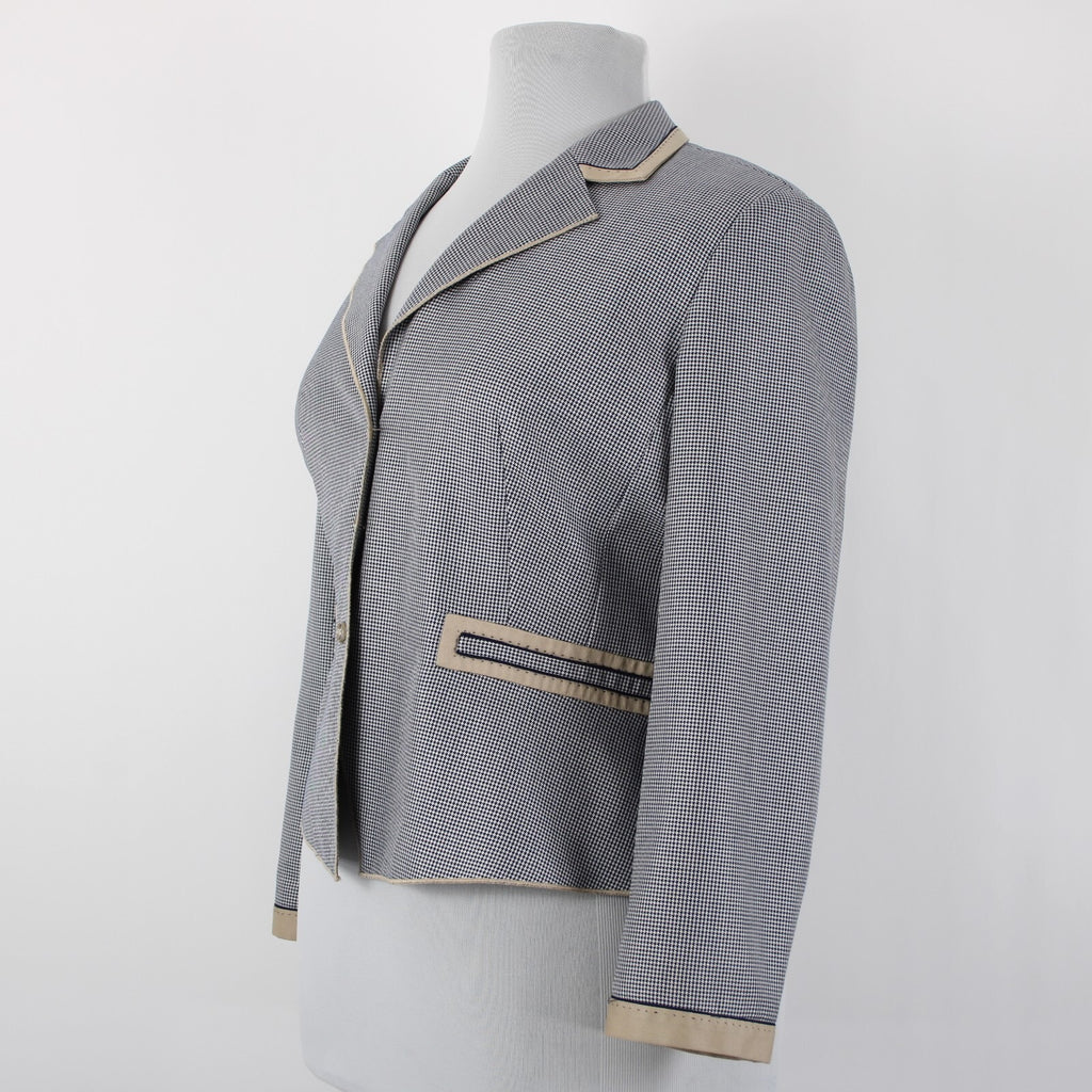 Carlisle Sz 16 Navy Blue White Brown Faux Pockets Lined Silk Wool Cotton Jacket