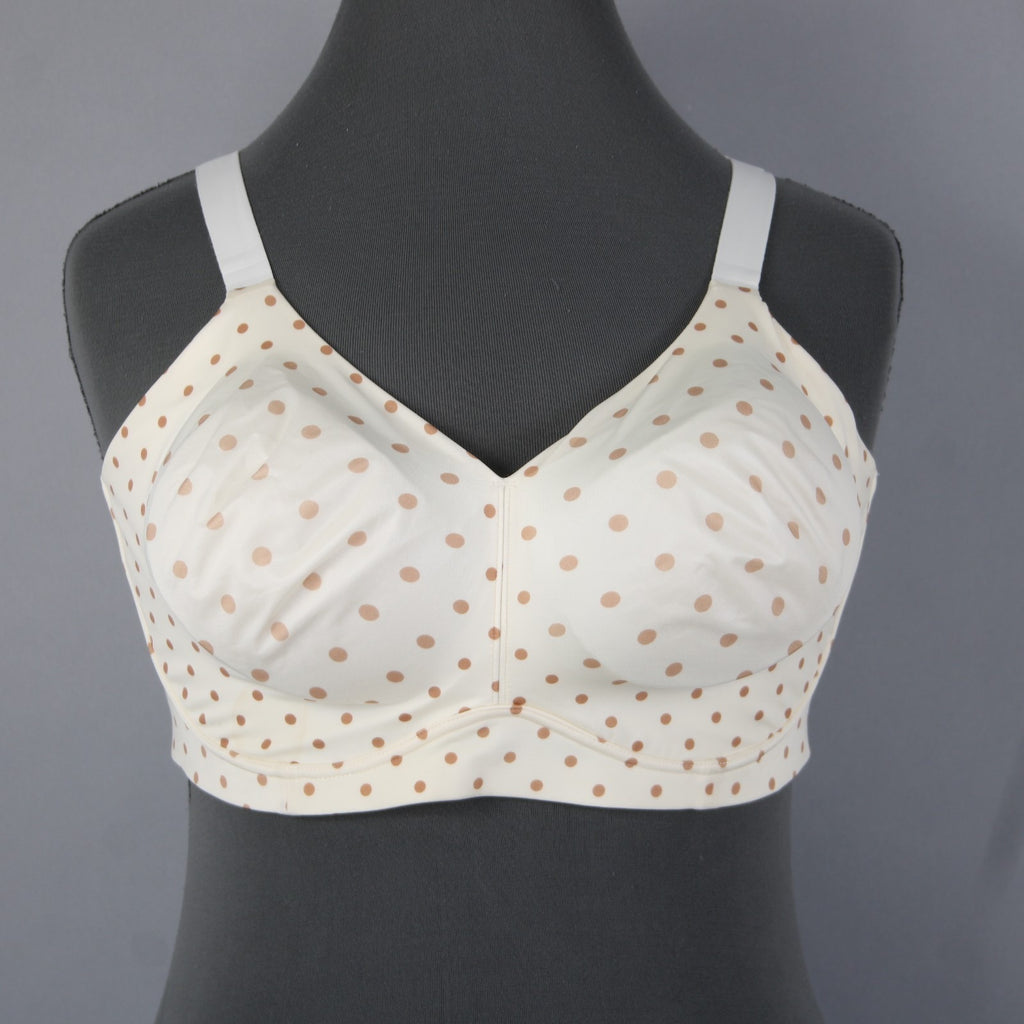 Catherines Bra NEW $48 Intimates Sz 50C Cream Tan Polka Dots Nylon Spandex Bra