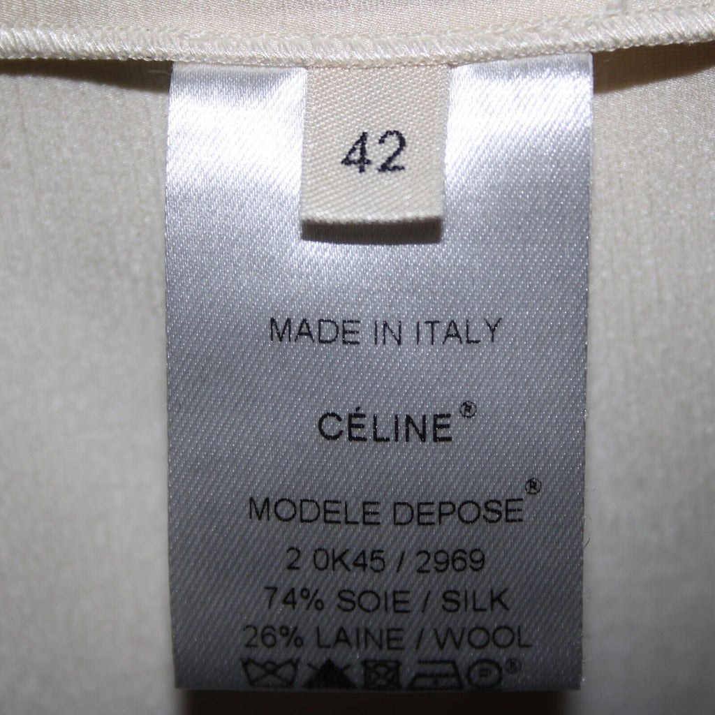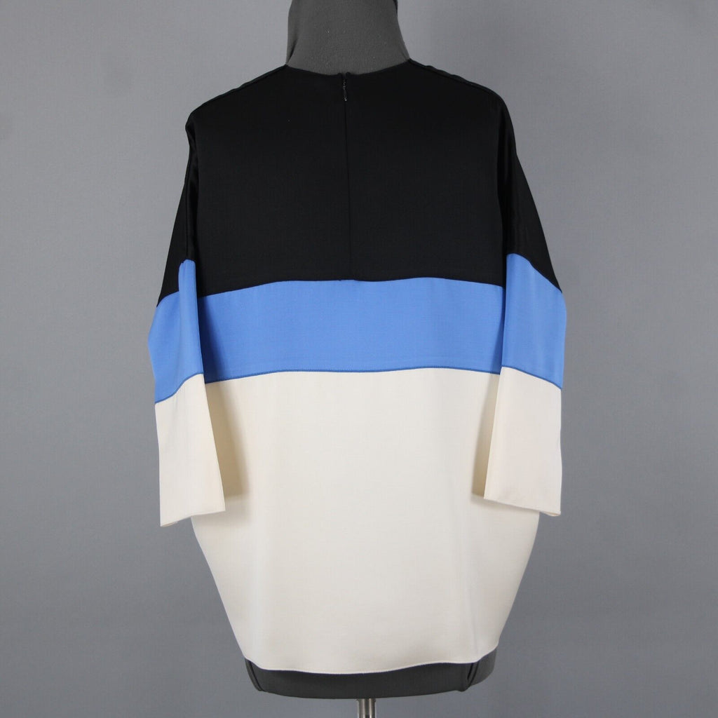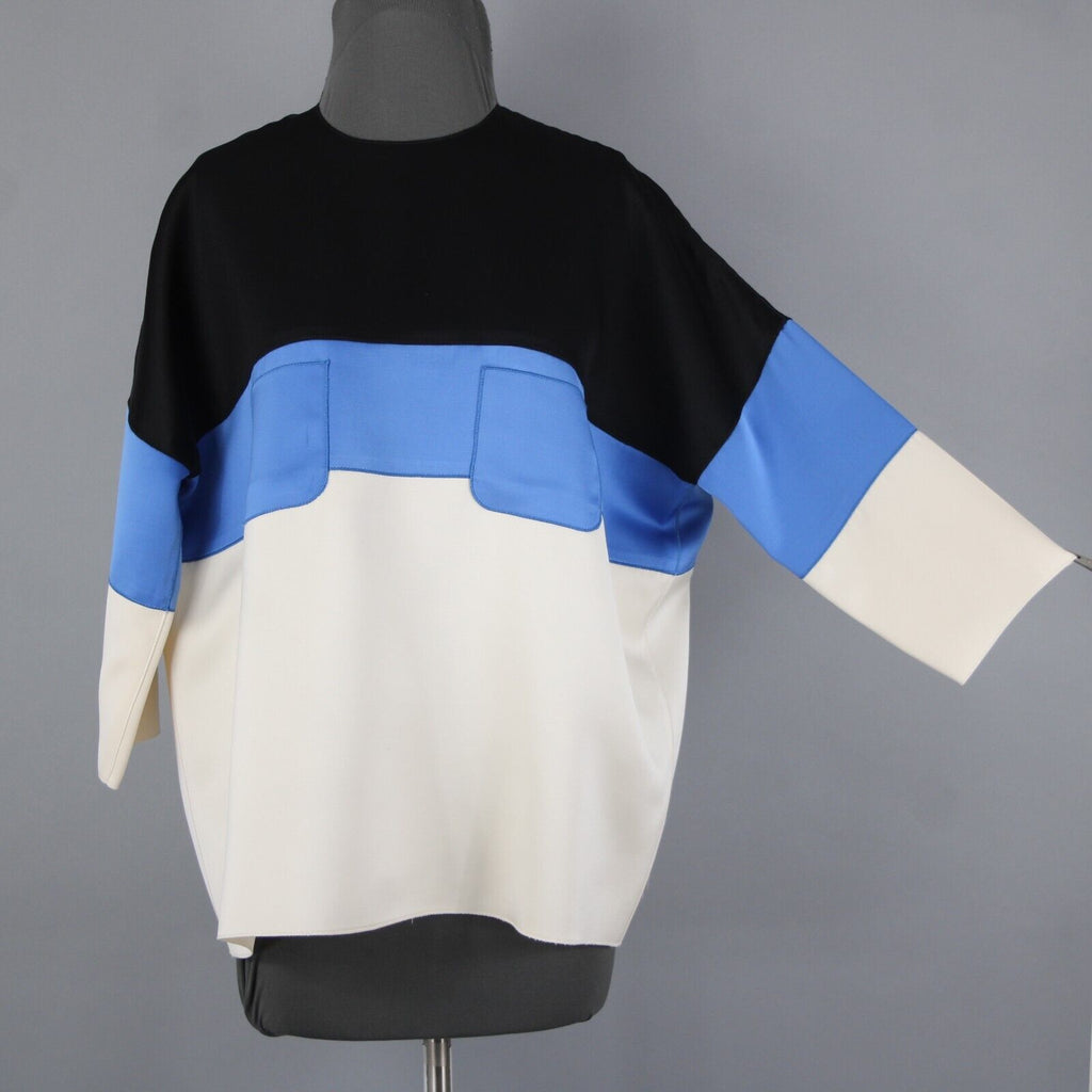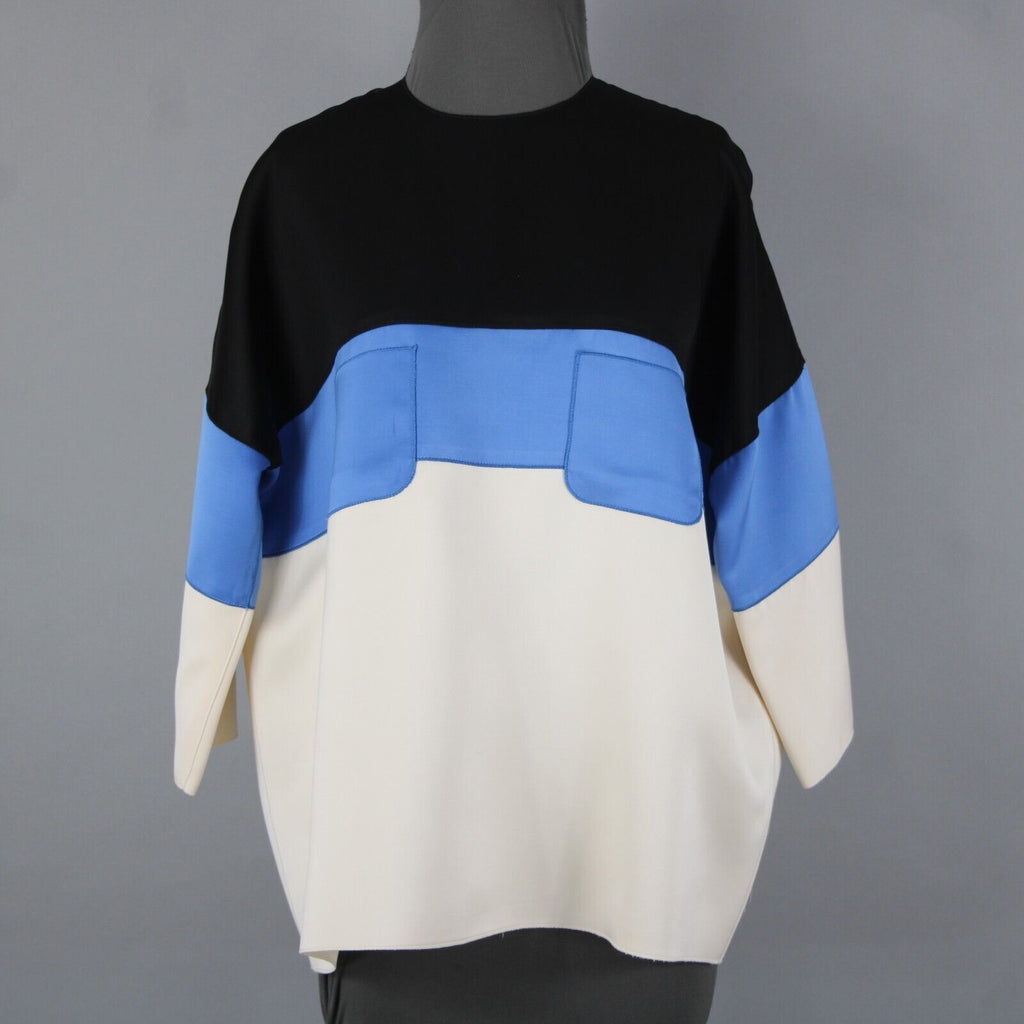 Celine Sz 42 Black Blue Ivory Color Block Silk Wool Top