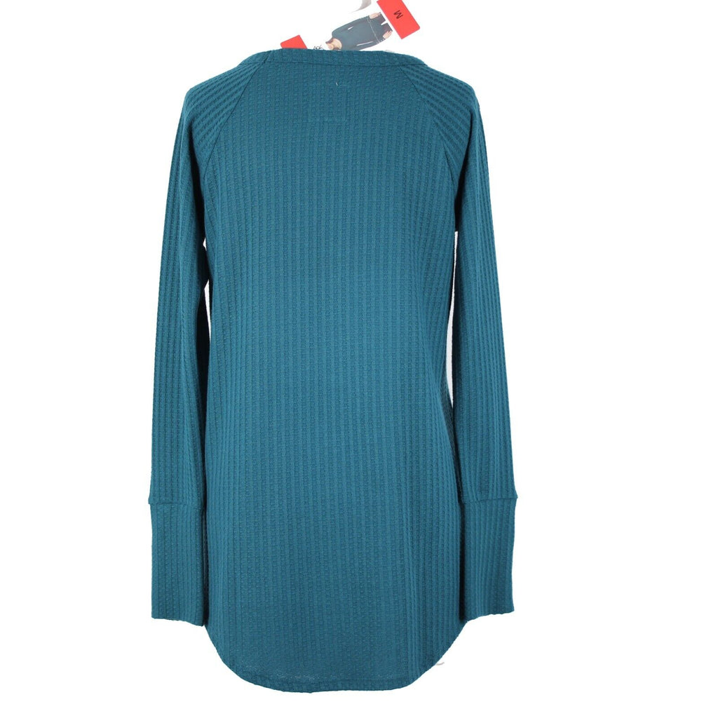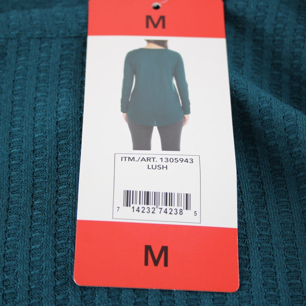 Cha Sor NEW Lush Sz M Teal Blue Long Sleeve Button Detail Poly Rayon Top
