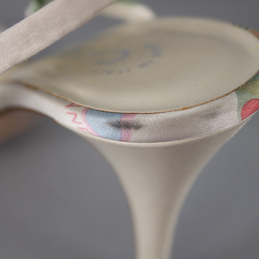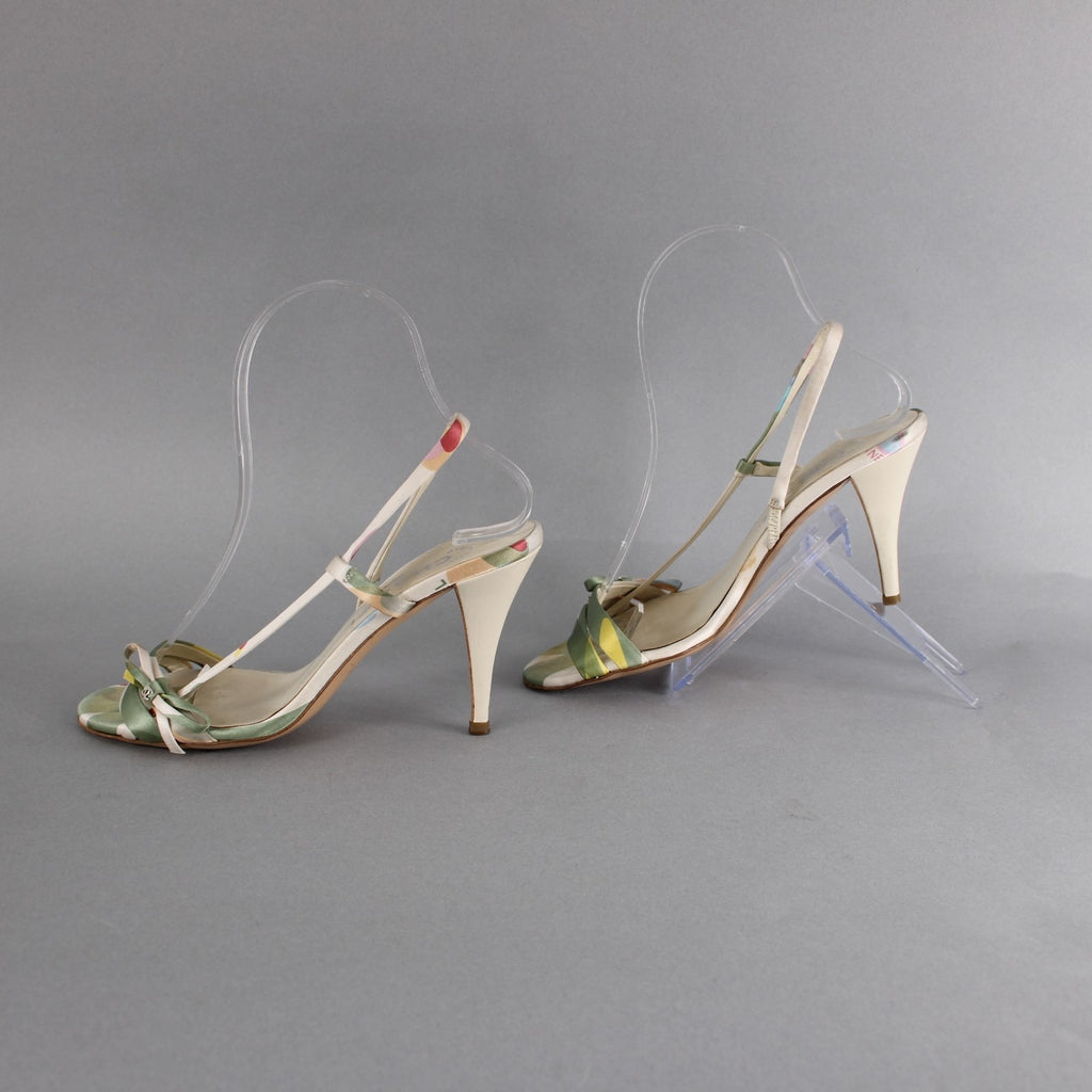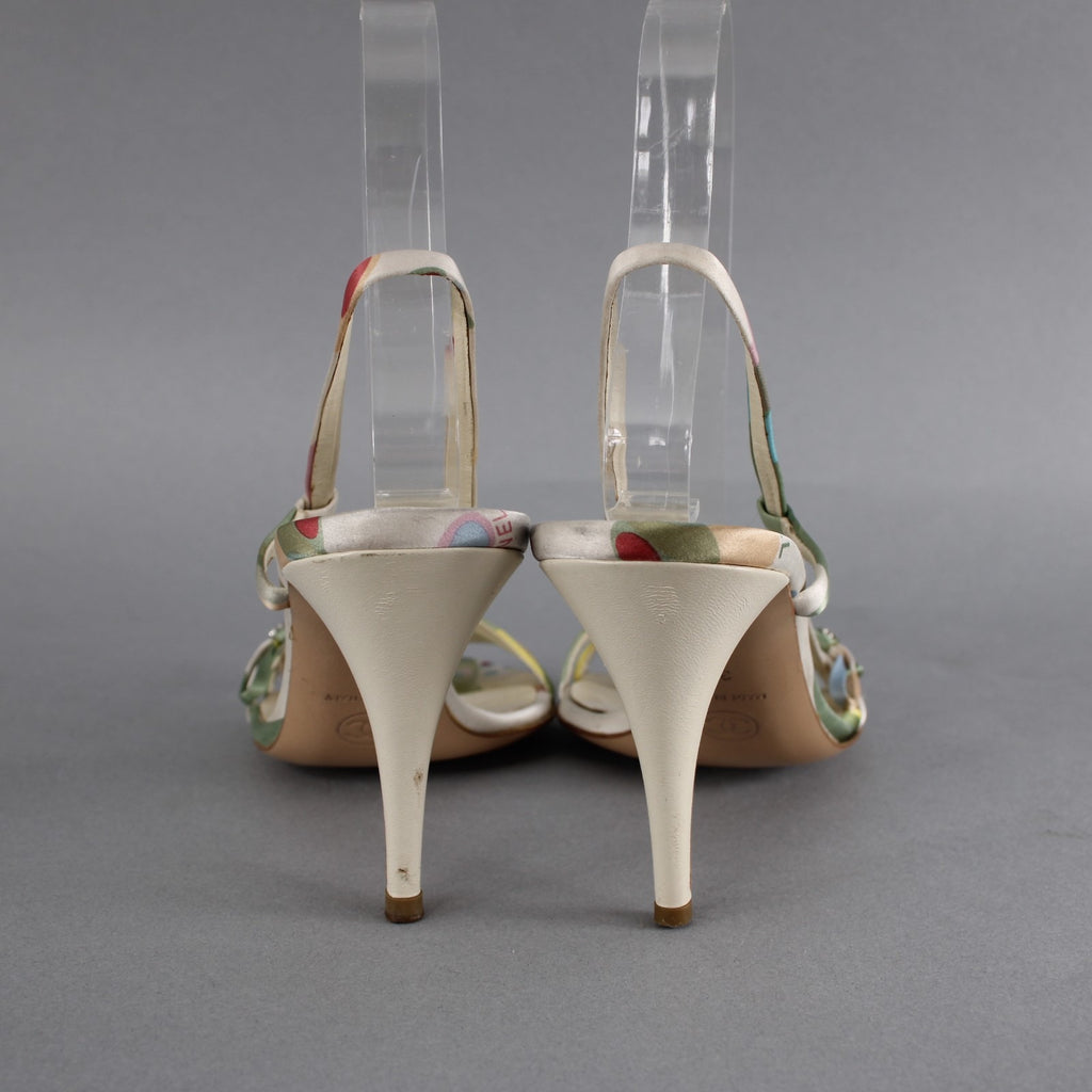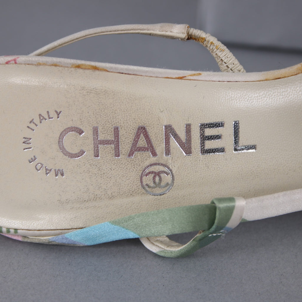 Chanel Heels Sz 36 Green White Multi Color Open Toe Ankle Strap 3" AS IS Heels