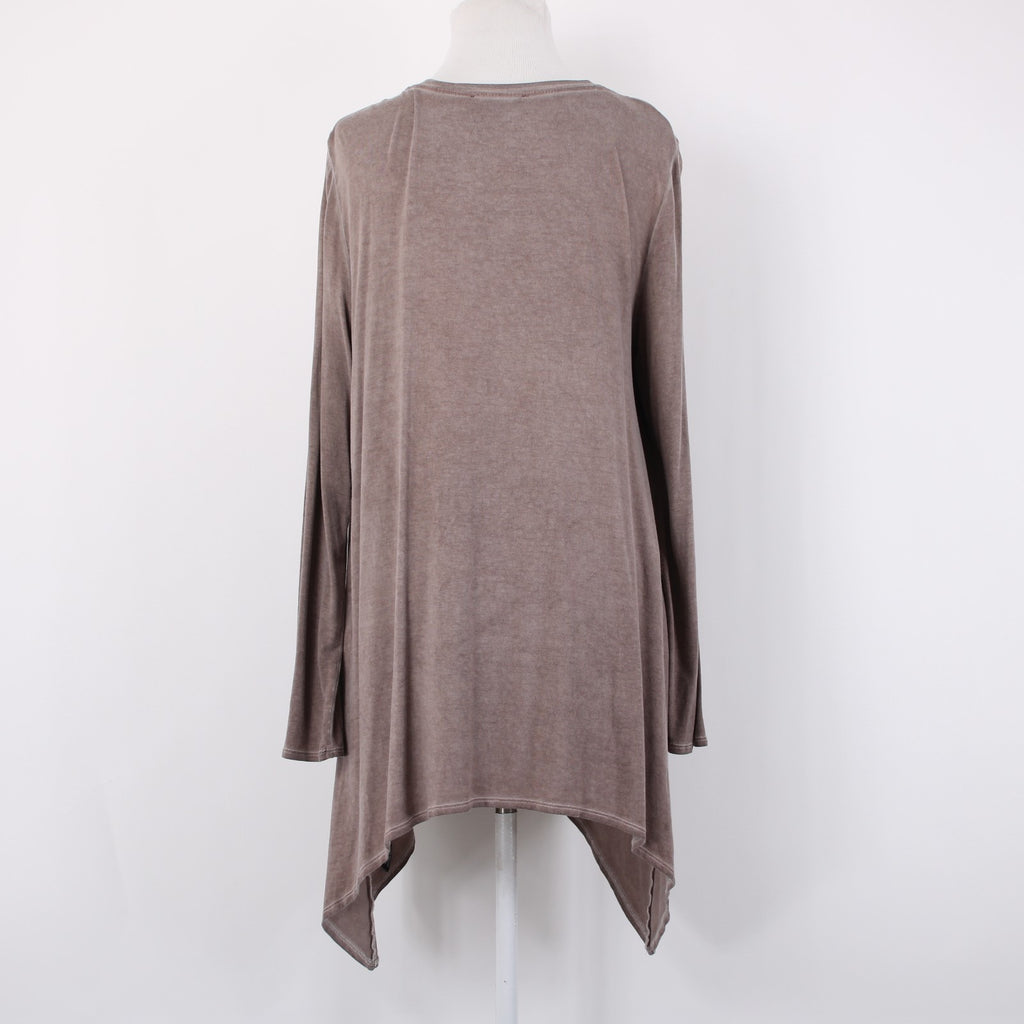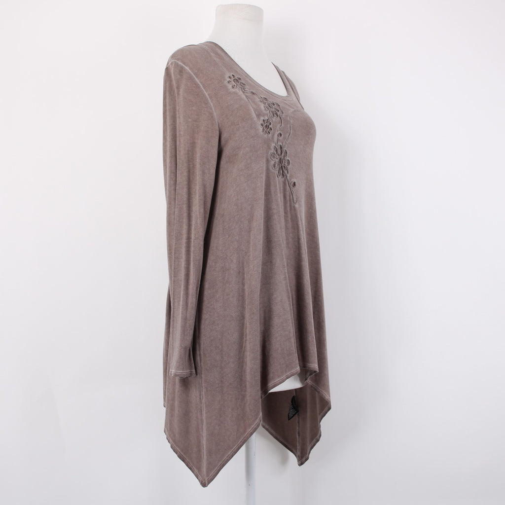Charlie Paige Top Sz S/M Brown Floral Asymmetrical Tunic Rayon Spandex Top