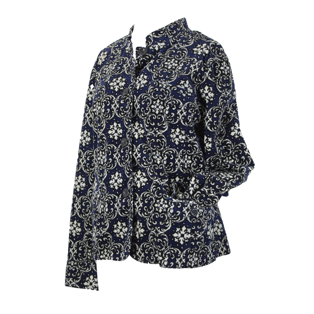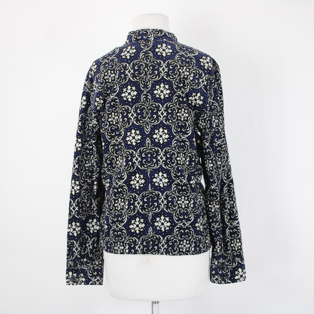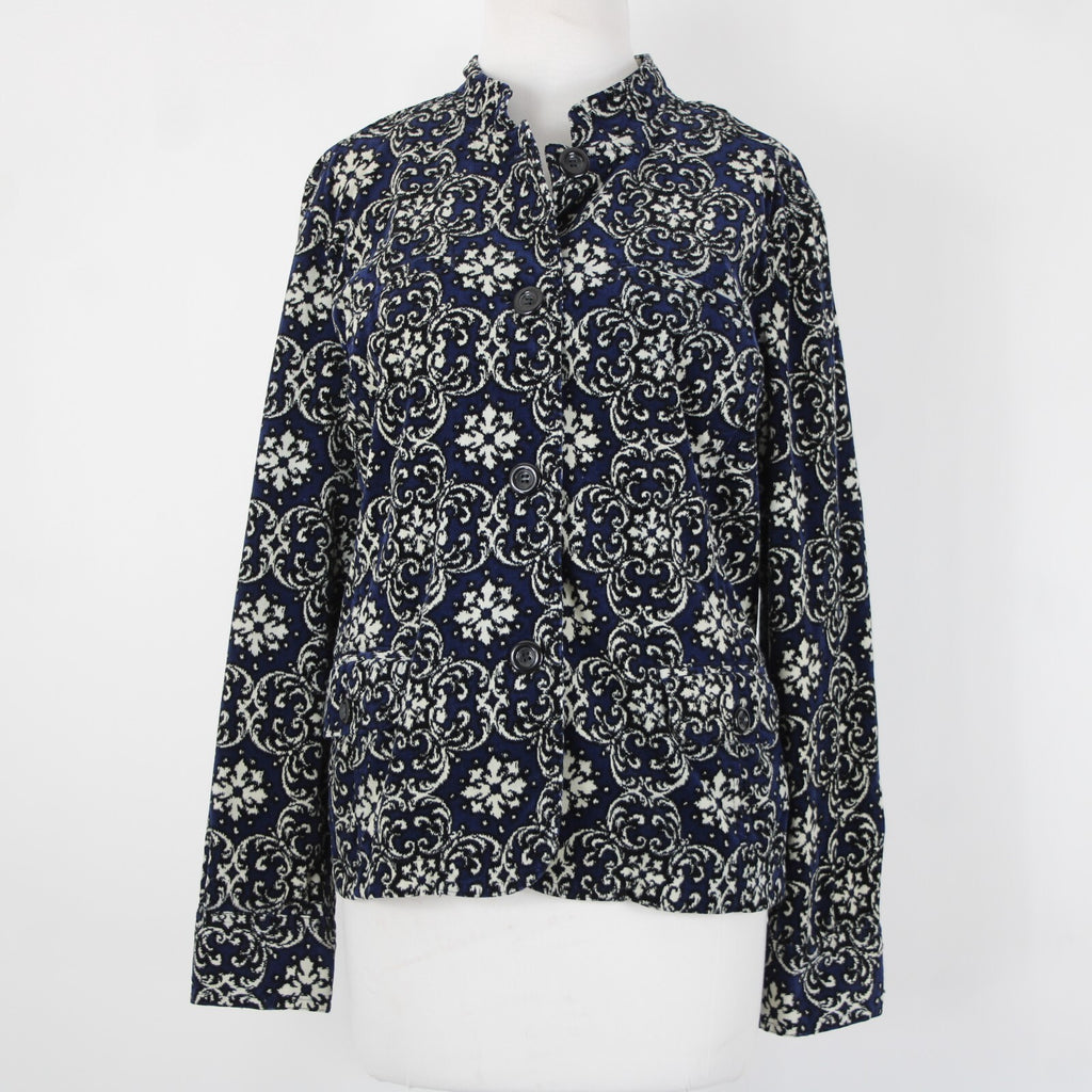 Charter Club Sz L Navy Cream Black Fine Wale Cotton Blend Corduroy Button Jacket